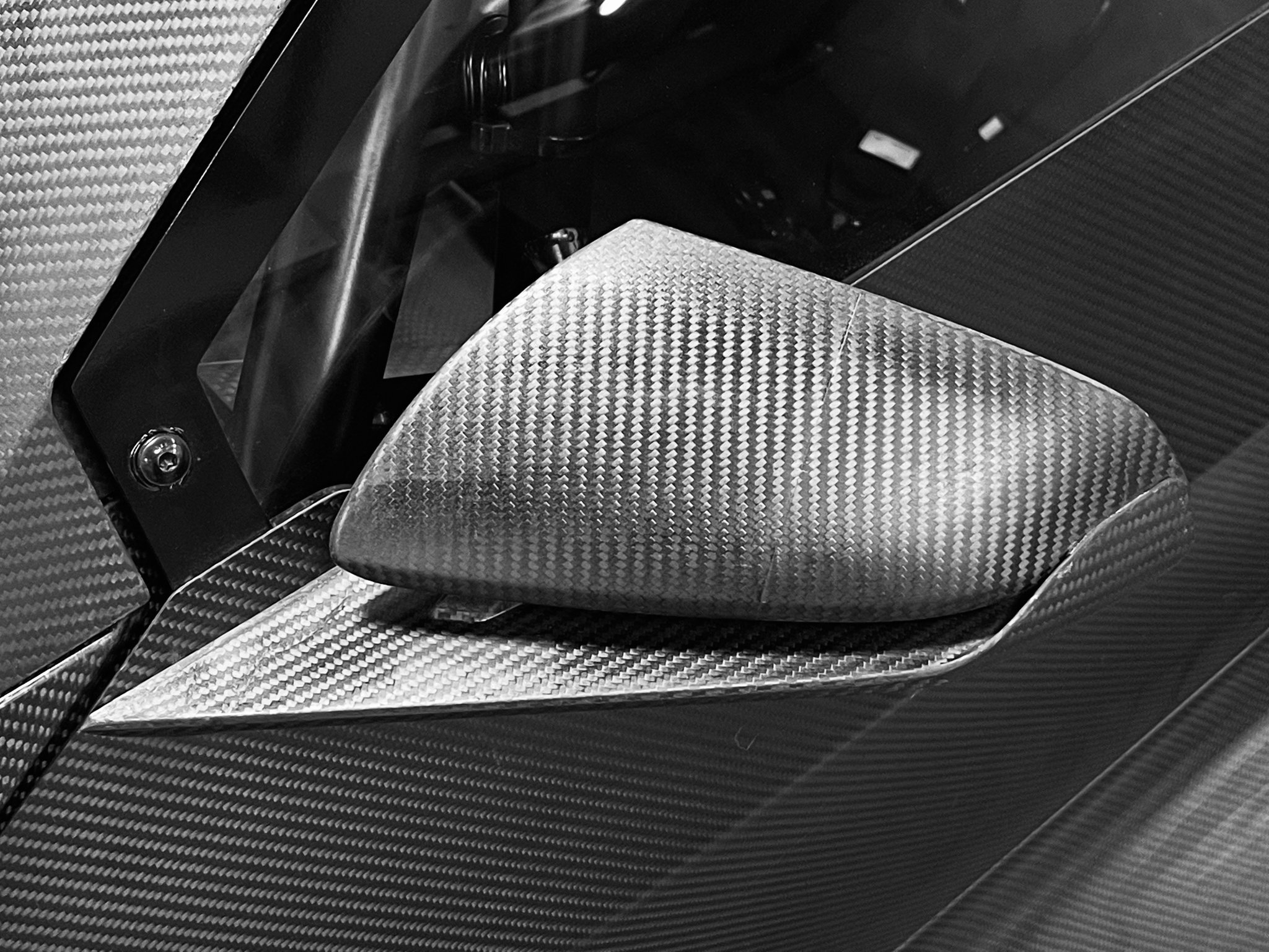 The carbon weave is beautifully aligned across the panels, even down to smaller details like the wing mirrors. The bare carbon gives the car a menacing, murdered-out look.
