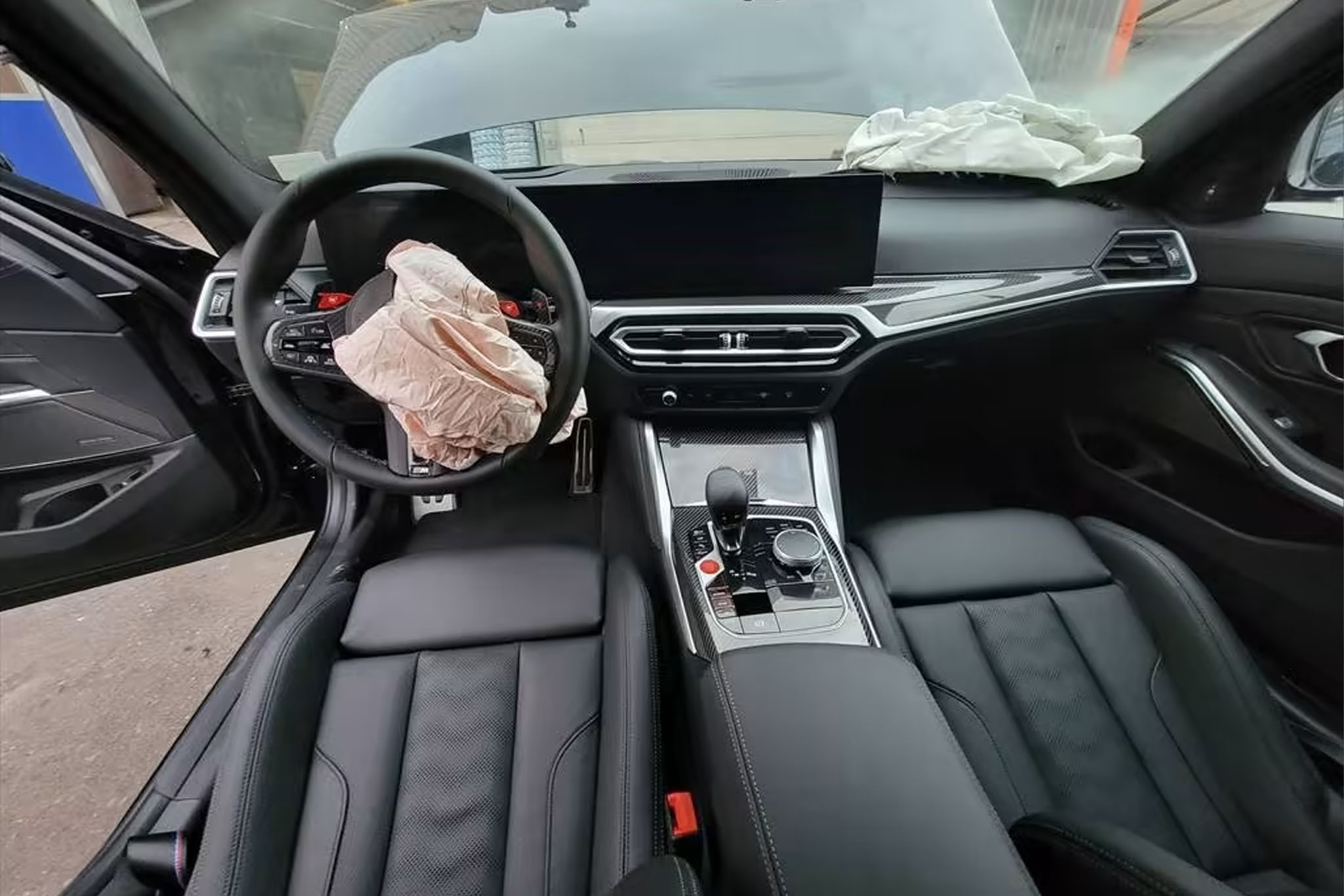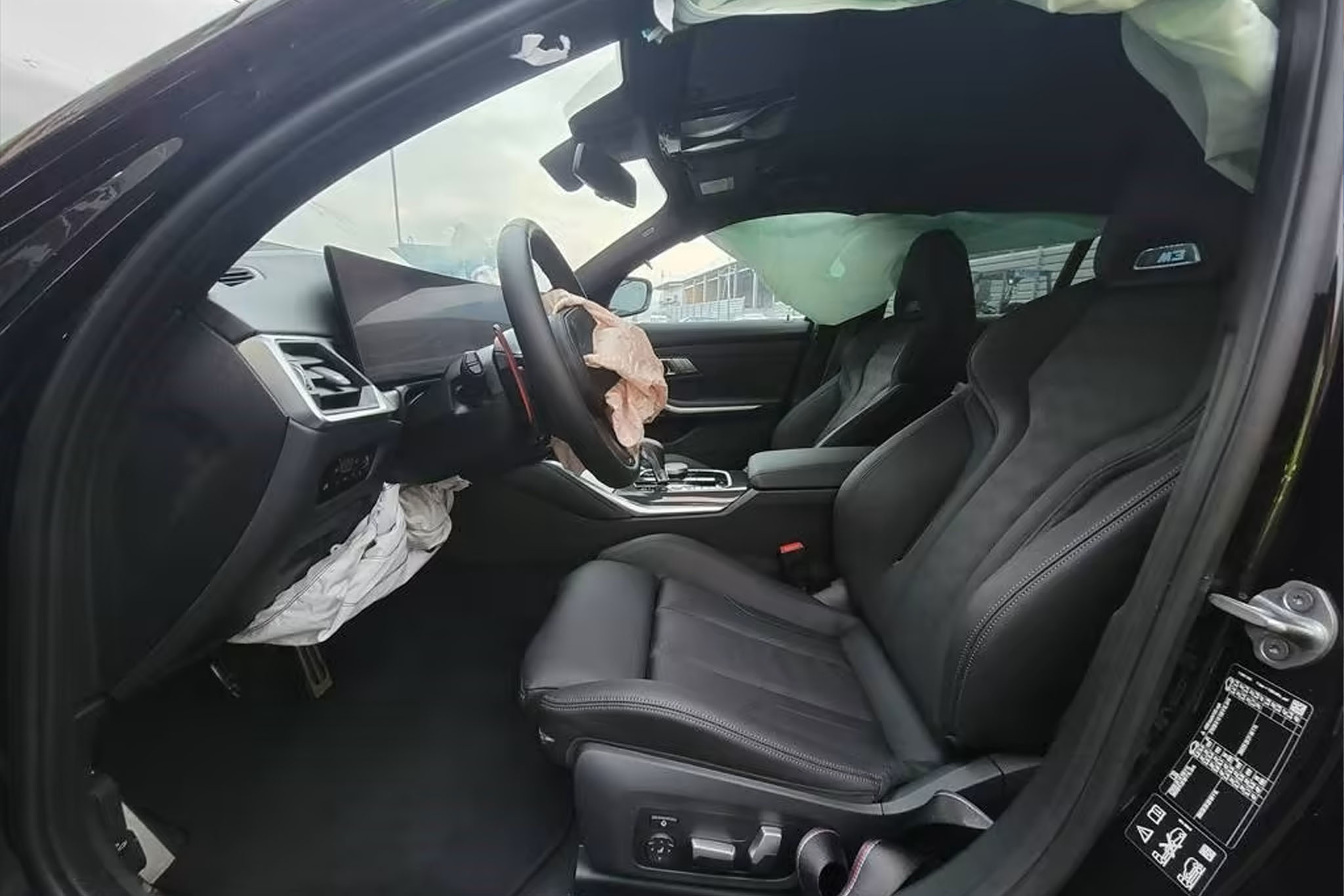 The M3 Competition Touring is listed for sale online for 72,999 Swiss Francs, or $79,210 as of writing. It has clearly been involved in a serious front-end collision, which is definitely going to require a ton of work to repair. Its engine apparently still runs, but it won’t for long without a new radiator and other accessories. Several interior airbags have also deployed.