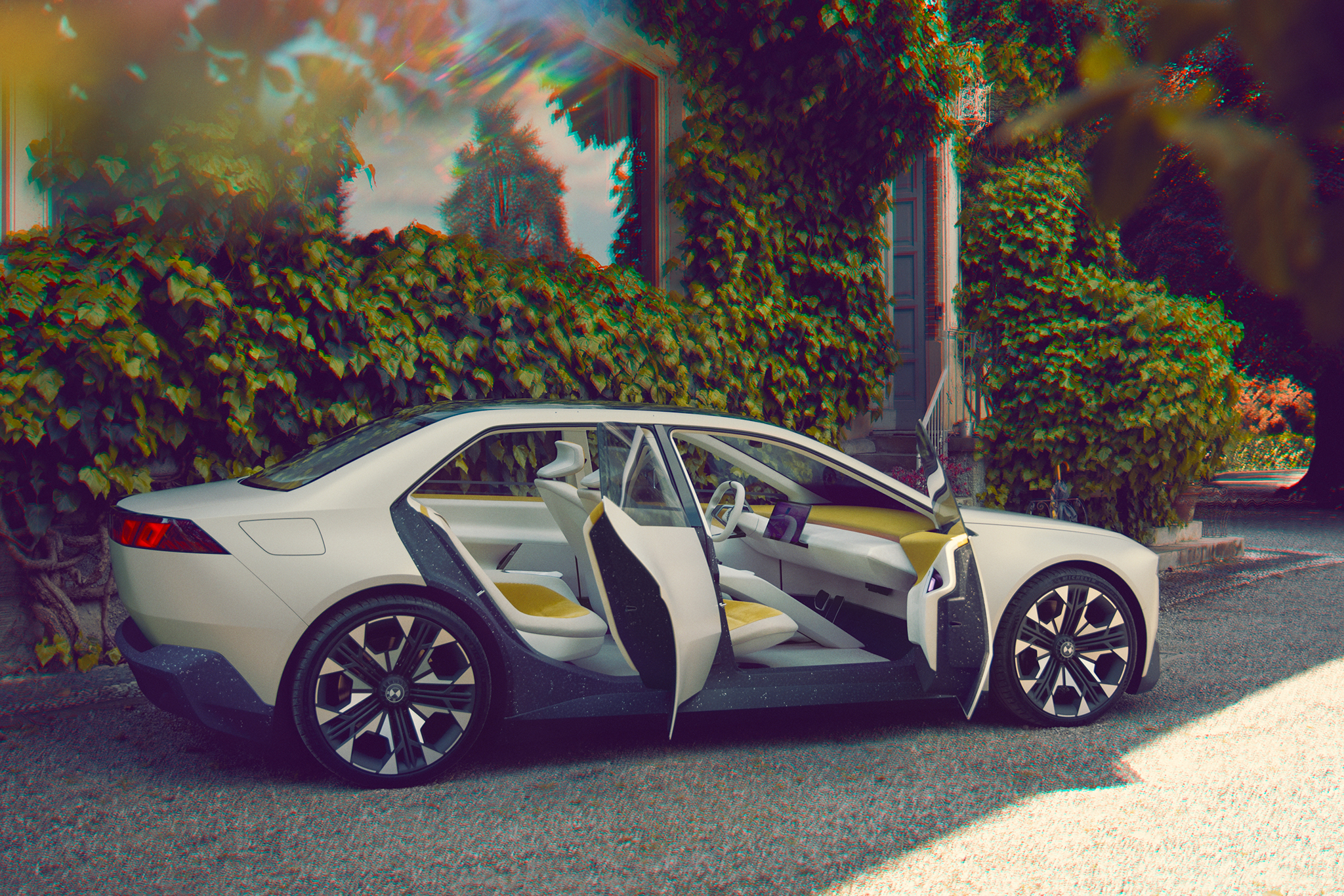The tall windows echo the 02-Series and let more light into the cabin, while flat surfaces and sharp angles signal the beginning of a new design era at BMW. It’s the de-Bangle-ization of the design studio, and the idea is to reduce visual fuss to focus on what’s essential. This also explains why there’s no chrome, though the European Union’s looming ban on chrome plating may have played a role as well.