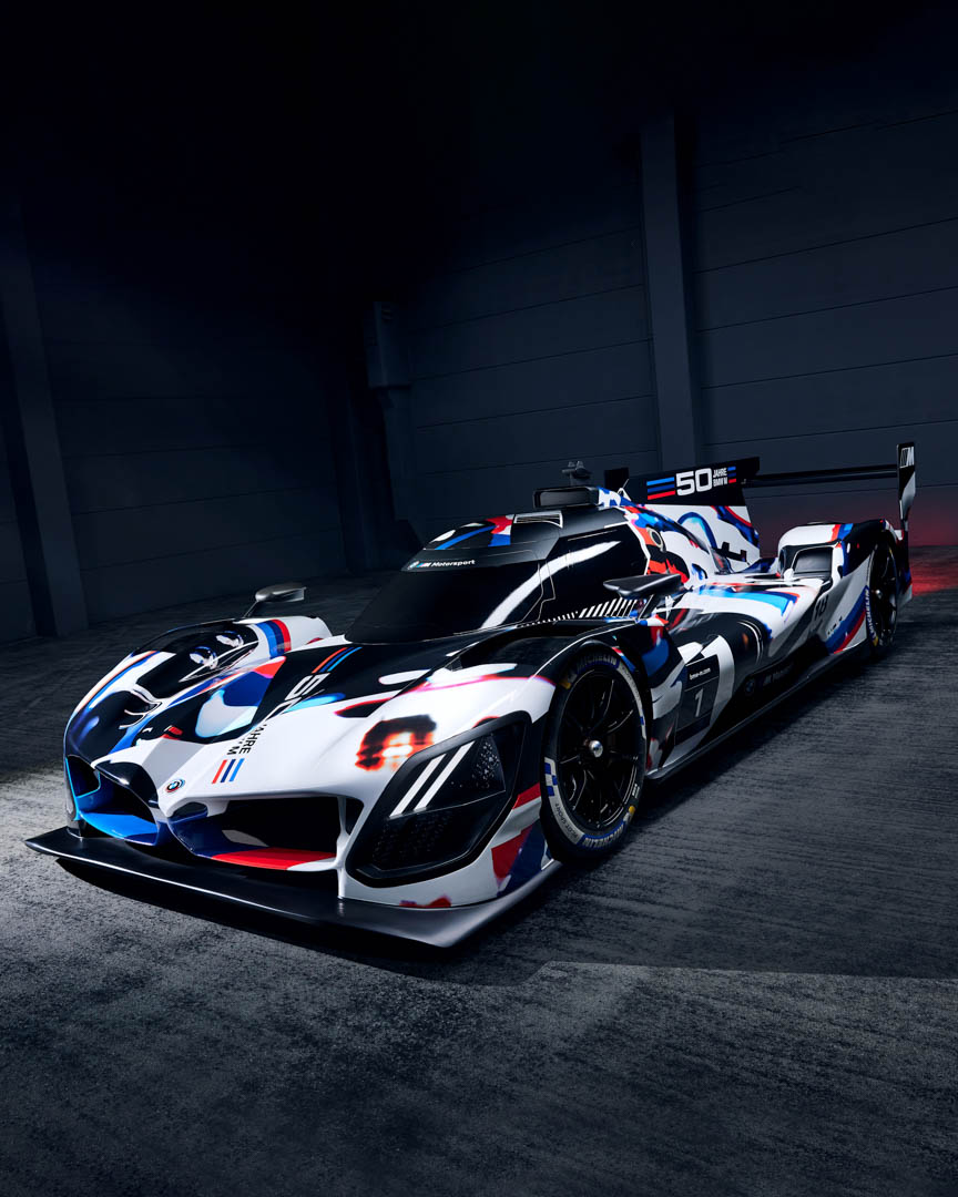 This livery is what BMW will use for the remainder of its development testing for the M Hybrid V8. While it looks like camouflage, much of it is made of subtle images of previous BMW M race cars. According to BMW, that camouflaged mosaic is meant to obscure its overall shape from competitors during testing, to keep whatever competitive aerodynamics advantages it might have.