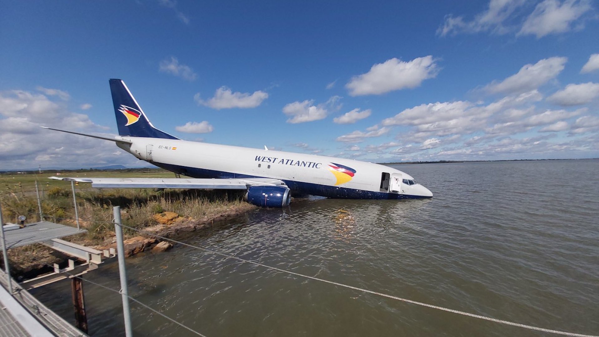 The plane, operated by Spain’s Swiftair for Swedish cargo airline West Atlantic, is reported to have been flying a domestic route in France from Paris Charles de Gaulle Airport (CDG) to Montpellier Airport (MPL) early Saturday morning according to Aviation Source News. At 2:36 a.m., the Boeing 737-400F freighter exhausted the overshoot area at the end of Runway 12L during landing, coming to a stop with its nose in a body of water referred to as Gold Pond, according to a local press release. Flight Global reports the plane approached in misty, low-visibility conditions with a crosswind, though no official explanation for the crash has yet been offered.