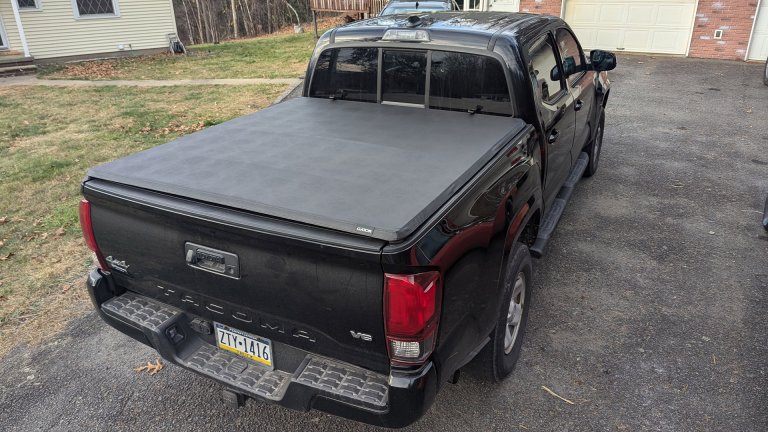 When you open the camper’s tailgate, you’re welcomed by a log cabin-esque front door finished in cedar shake siding. There are drawers, a water hose port, and even what seems to be a doorbell. Open that door, and you’ll find a bed and a countertop featuring a sink and a single stovetop burner. I’m not sure how often I’d want to cook over an open flame inside a tinder box with little airflow, but it’s there for those brave enough.