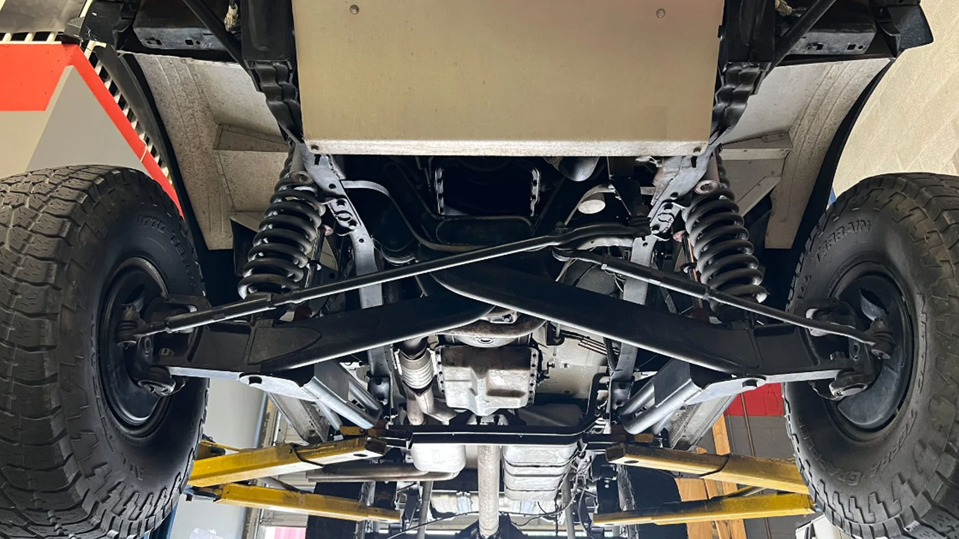 The base truck itself has 149,000 miles on it and it’s mechanically sound. Outside of the suspension mods, the pickup also has a new tubular front bumper, a tubular tailgate instead of the original, and fiberglass front fenders to account for the wider track. The bedsides have also been flared out to account for the new wider wheels and 35-inch tires, and the original fender liners have been replaced with welded aluminum ones.