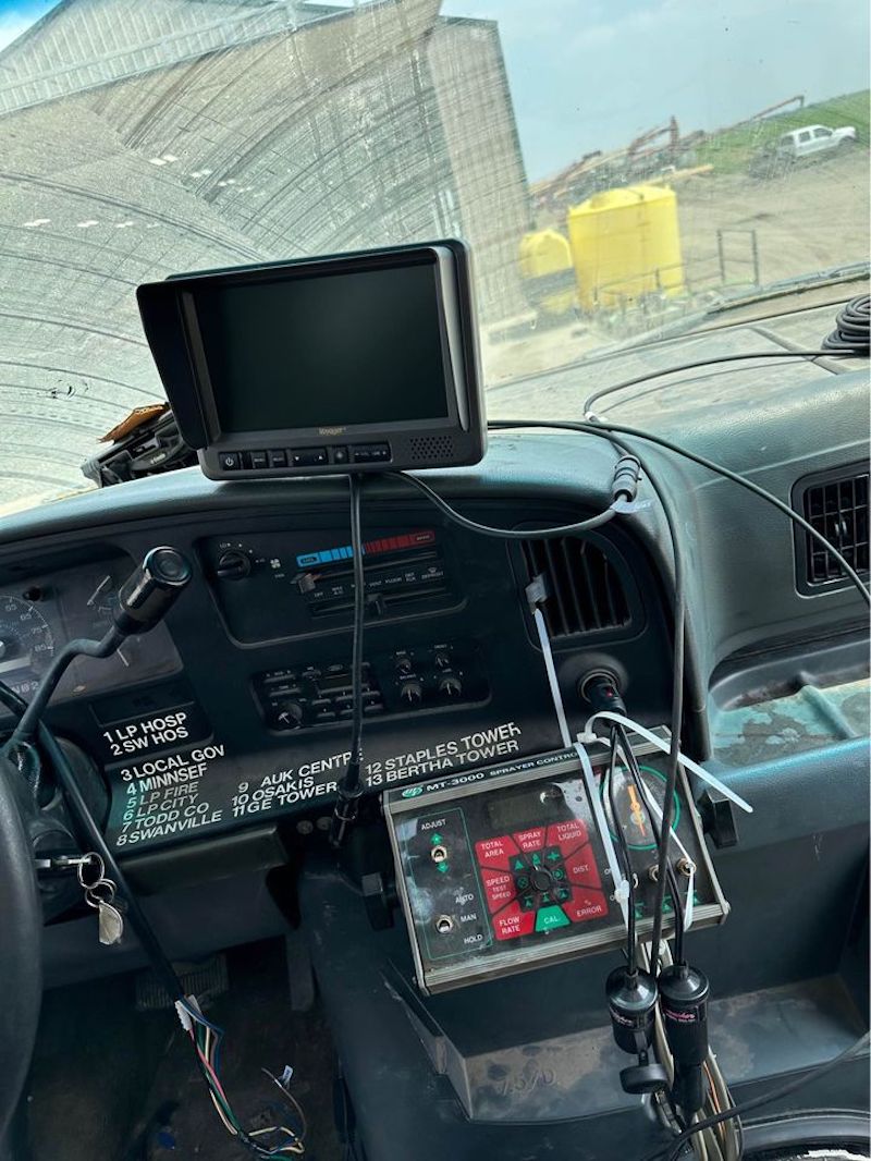 As part of its conversion into a sketchy sprayer with the least-good suspension uprights I’ve ever seen (if you can even call them that), it has also been equipped with modern farming tech. Namely, a farming-focused navigation system, as well as onboard fleet telematics. They presumably give it some of the same brains as a purpose-built sprayer, though the real deal is probably both more reliable and easier to use.