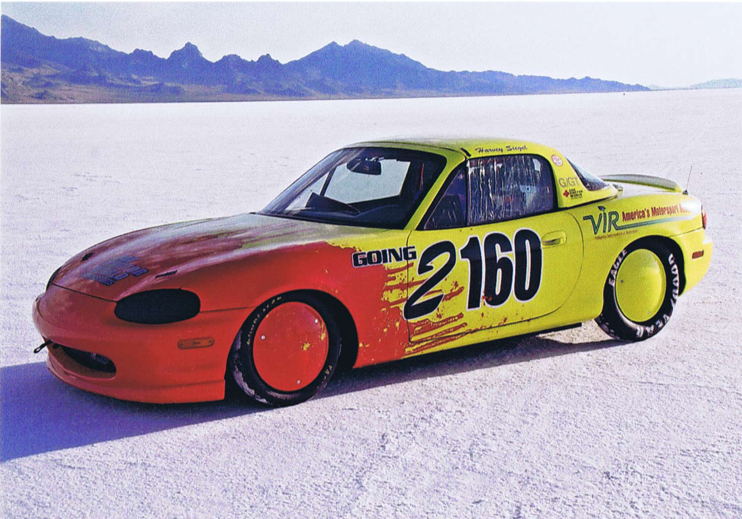 Running a naturally aspirated Miata motor bored to 1.99 liters and belting out 290 horsepower (did I mention it’s N/A?!), the car hit 165.296 mph on the Bonneville Salt Flats, with then-owner Harvey Siegel’s son Luke at the wheel. That was enough for the G/GT class land speed record. (In the parlance of officiating Southern California Timing Association, “G” means 2.0-liter engine, and “GT” means two-seater.)