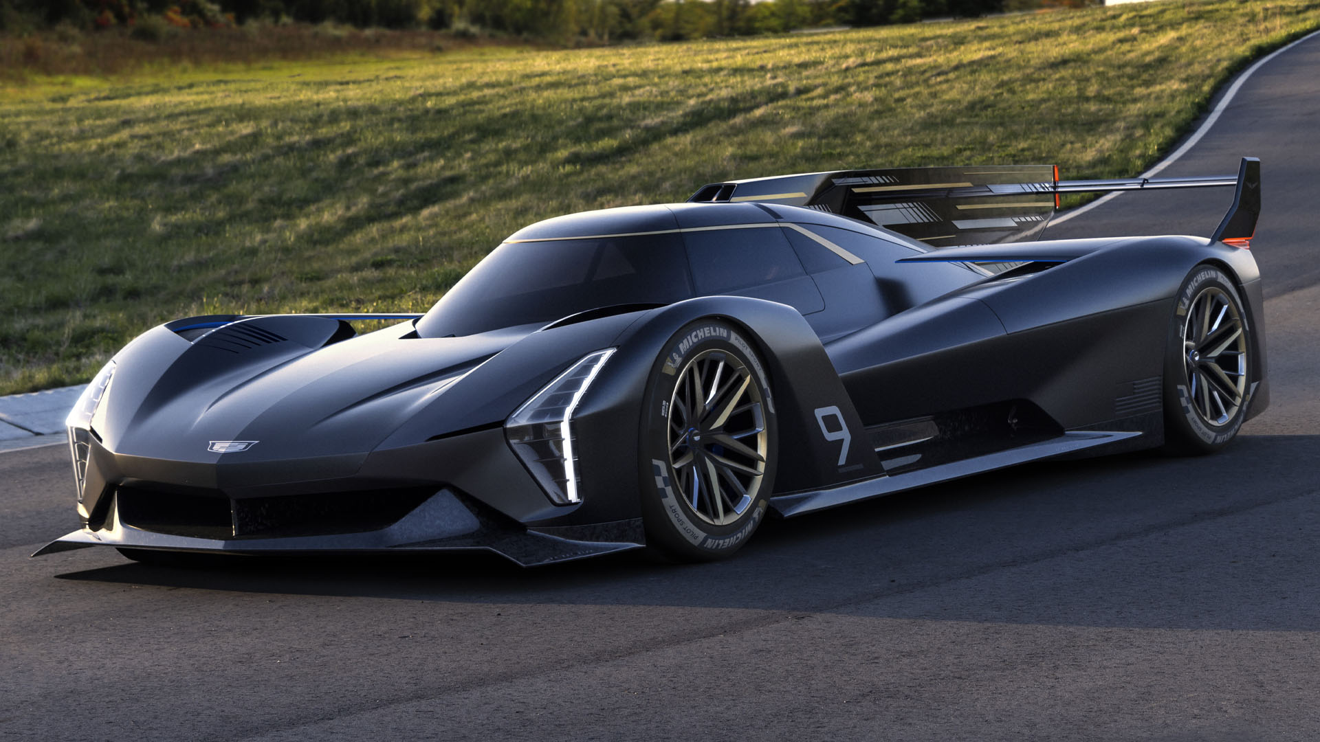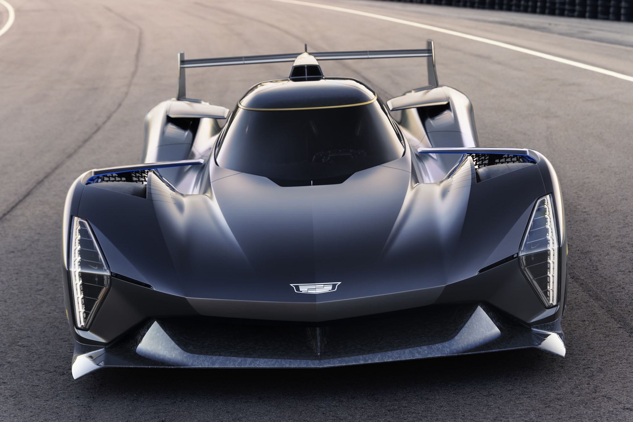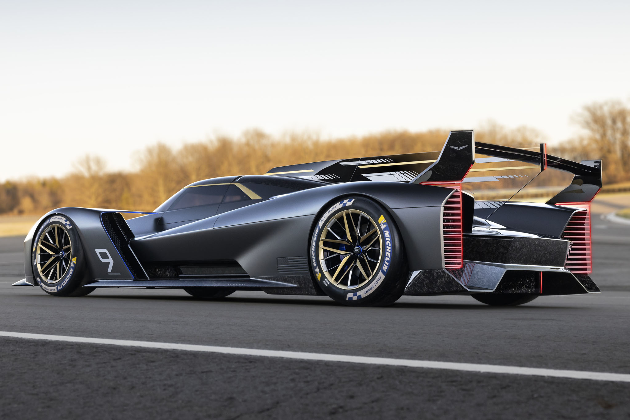 Not only is the vehicle previewed here a track-bound racing car, but it’s also an expression of Cadillac’s design ethos. It features the brand’s classic vertical lighting cues and a slew of other details, all wrapped up in some beautiful forged carbon fiber. It’s powered by what the automaker describes as an “all-new” 5.5-liter DOHC V8 paired with the LMDh common hybrid system. It’s unclear if this motor shares anything with the Chevy Corvette C8.R’s engine of a similar description; however, the total system output will be in the neighborhood of 650-700 horsepower.