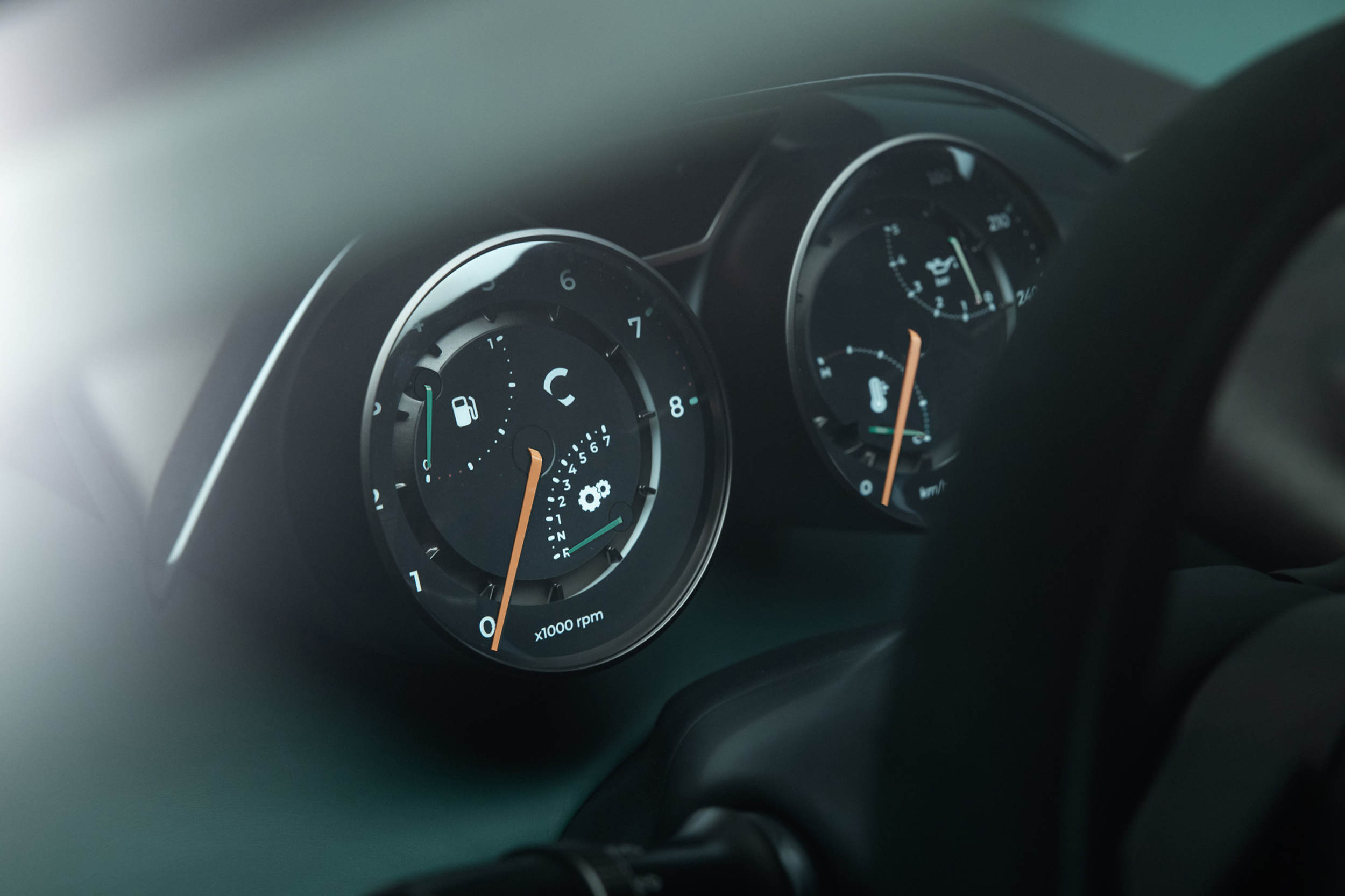 There wasn’t much of an interior in the stunt cars, so Callum pretty much started from scratch. Peek inside and you’ll see an unbranded steering wheel machined from solid billet, an analog instrument cluster with a cool-looking gauge that tells the driver which gear the transmission is in, and a pair of sport seats upholstered with Bridge of Weir leather. Modern features that weren’t fitted to the stunt cars, such as a digital rear-view mirror, a wireless charging pad, and Apple CarPlay connectivity, are included. It looks like a tremendous amount of work went into the project.