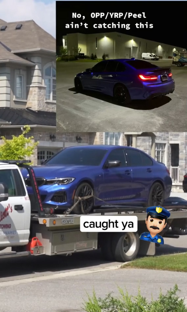 Posting videos of yourself street racing online isn’t a good idea, as one 22-year-old TikToker from Aurora, Ontario recently found out. The man filmed himself breaking the law in several areas around the city of Toronto, including the York neighborhood, in what appeared to be a newer BMW M340i. The York Regional Police were watching the whole time. The driver was arrested on August 16, but the cops weren’t done yet. They decided to teach the suspect a lesson on his favorite social media platform, posting a video edit of his car getting towed to the impound lot on TikTok.