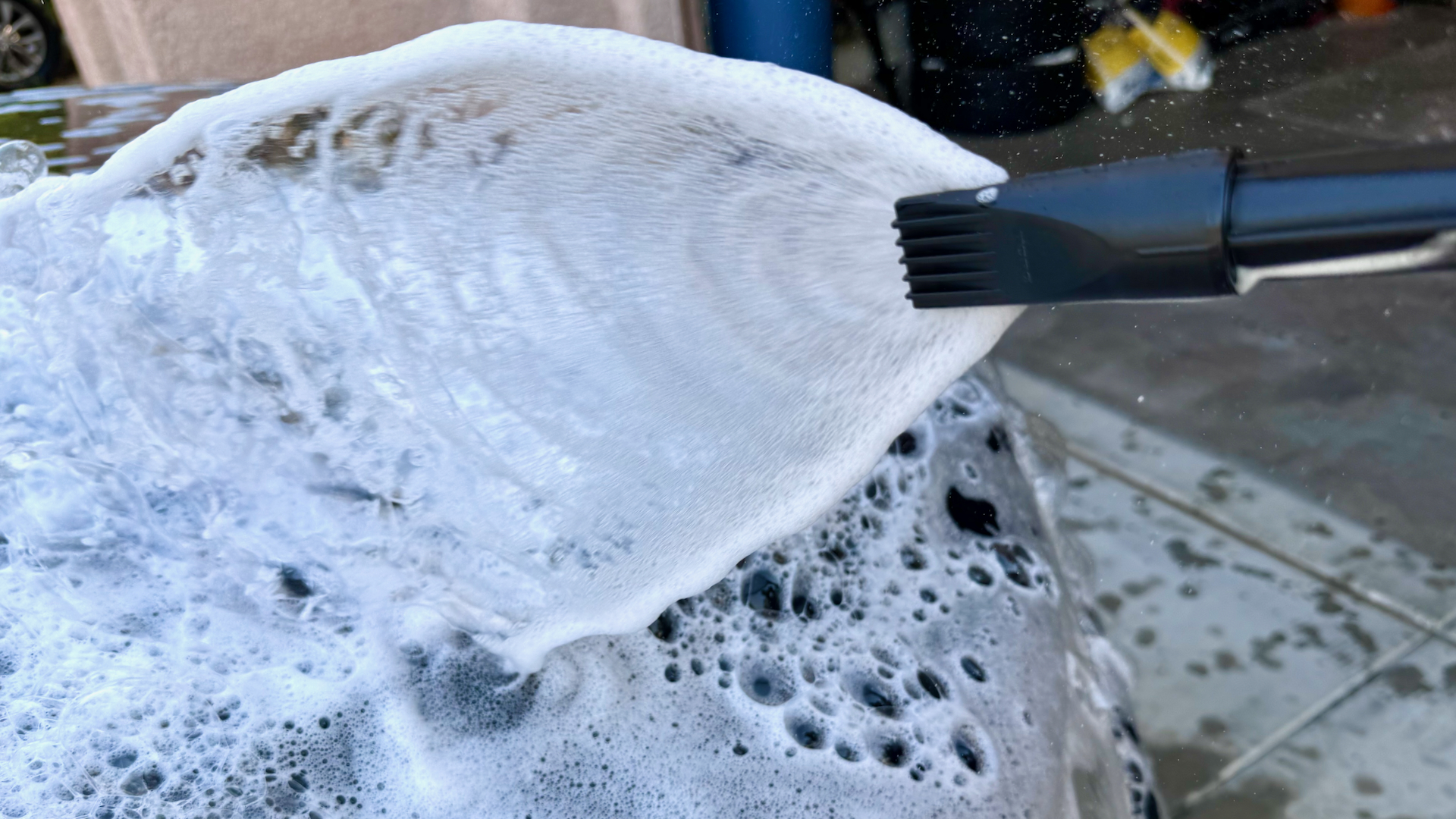 I get the concept; spray the entire car down with a foam cannon, let it dwell for a few minutes, and the foam will lift and encapsulate all the contaminants on your paint so you can hose them away. I live in Las Vegas where the humidity is currently 14% which is pretty normal. Things dry out quickly here. I can’t leave the foam to dwell because it quickly dwies(not sorry). On top of that, if the car has more than a light layer of dust, you have to scrub the car anyway. I end up sudsing up the car with the foam cannon and as soon as I’ve gotten all the way around the car, I start rinsing, then I go back with a bucket and microfiber wash mitt. But, I don’t have income tax, life is a compromise, right?