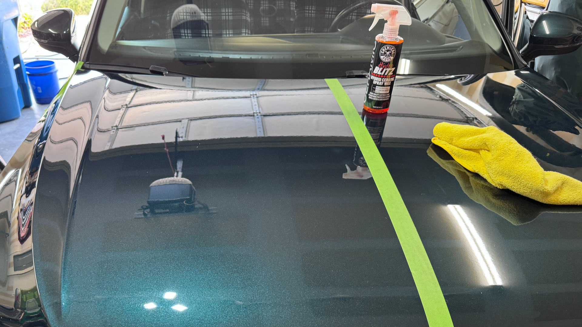 I started with a small area, but eventually went full-cliche and taped off half of my hood. It could use a better spray nozzle as the mist that comes out is pretty inconsistent with big drops in places and dry spots in others. A lot of these spray waxes and ceramics use moisture in the air as a catalyst. I’ve noticed cyanoacrylate glues(super glues) take forever to cure because of the lack of moisture, so that leads me to believe that HydroBlitz probably flashes quicker in more humid environments.