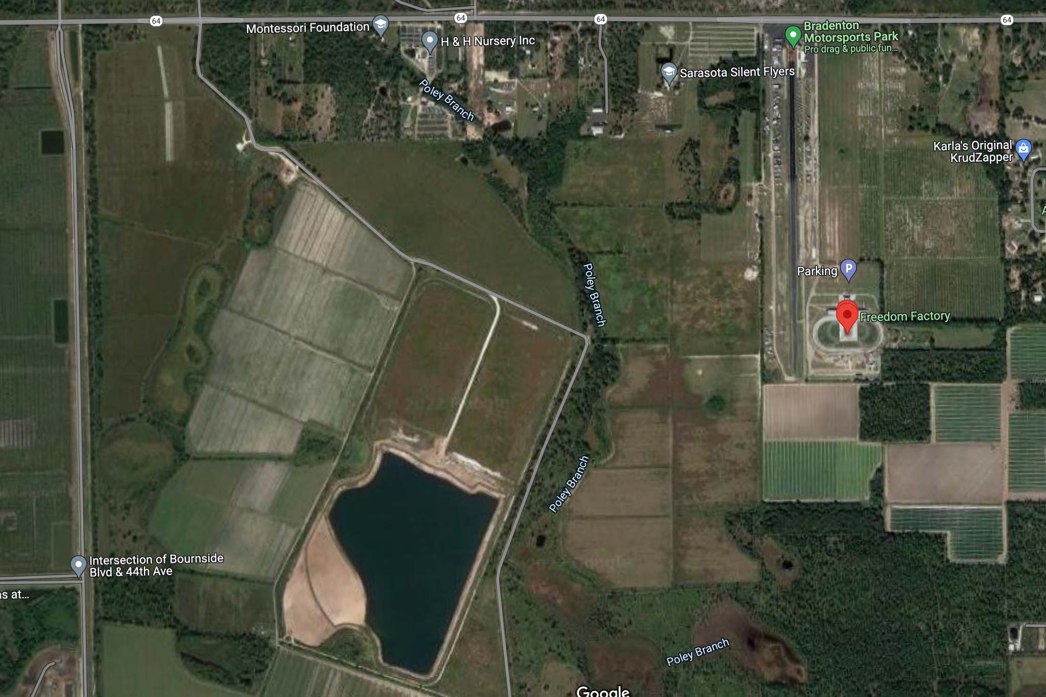 As you can see on the map, the Freedom Factory is located just off Highway 64. The land immediately to the west, which runs to Bourneside Boulevard, is what’s being discussed and voted on in Manatee County. Those in favor of re-zoning the land have already introduced the idea of sound abatement by way of a 25-foot fence, though Mitchell argues that’s unlikely to keep his potential new neighbors happy. He noted in a public hearing on Dec. 8 that while he’s in favor of sound control to some degree, it’s unlikely they’ll be able to keep events quiet enough to prevent complaints.
