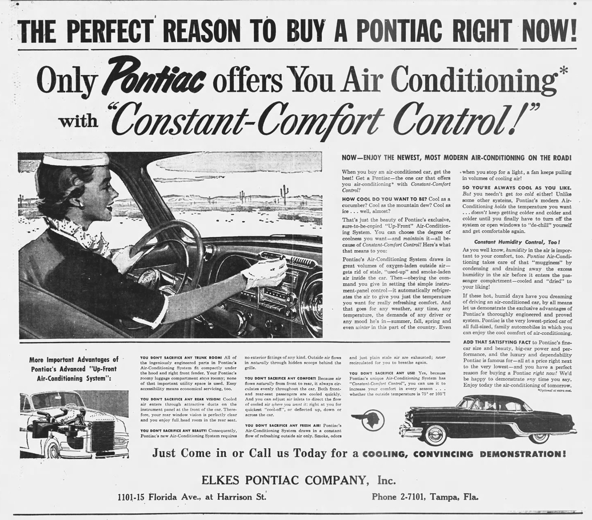 Still, things were moving fast; in 1968, the Cadillac Fleetwood Limousine and the AMC Ambassador became the first American cars with standard air conditioning, though many more offered it as an option. By 1969, 54 percent of all cars sold in the country had it either optioned or as a standard feature. A/C was no longer a luxurious novelty; it was almost a given.