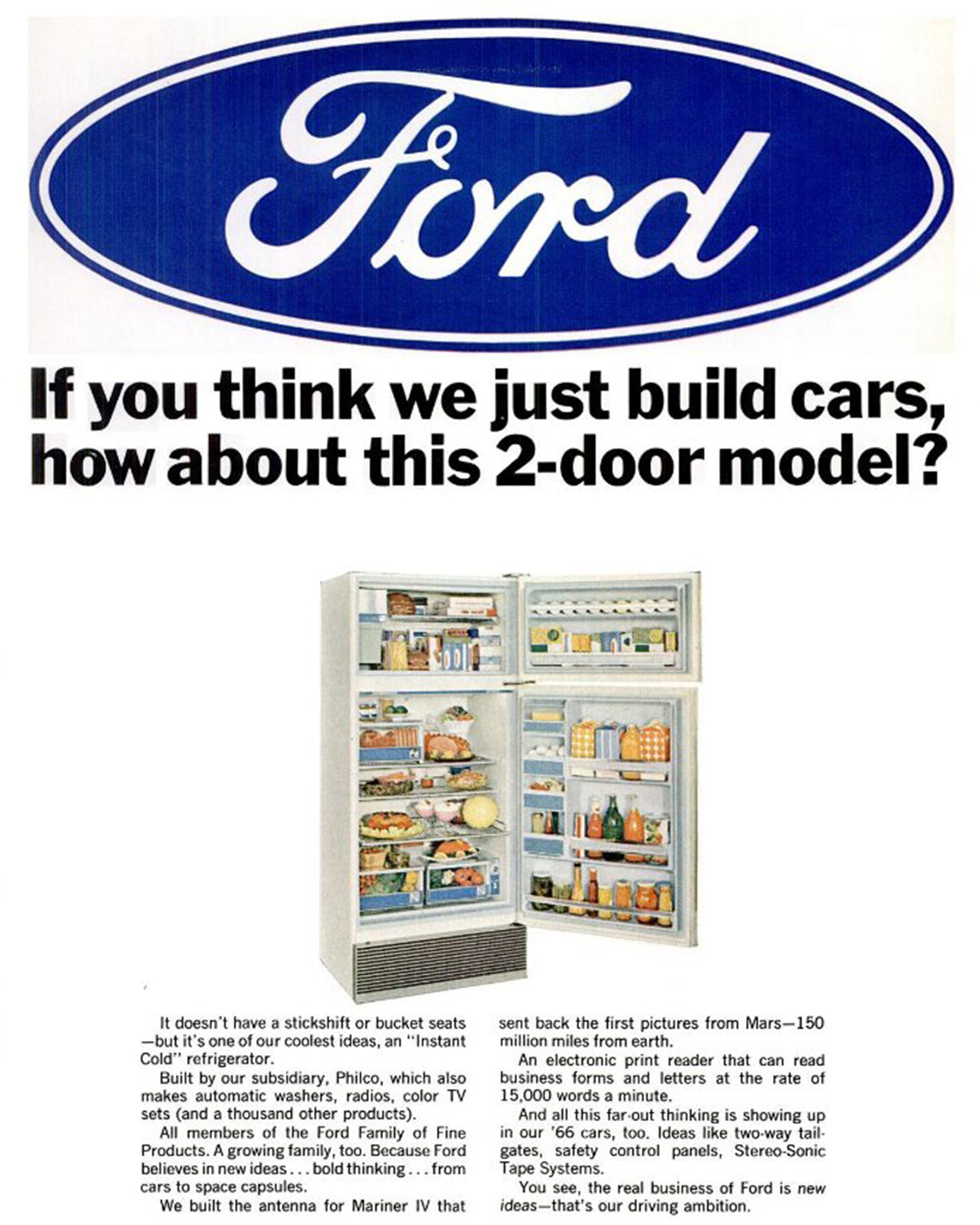 Interestingly, Studebaker and AMC both sold their appliance lines to the same company in the 1960s: the mysterious-sounding White Consolidated Industries. WCI was a former sewing machine manufacturer that had rebuilt itself as an appliance company with a “slash and burn” business model. It acquired other companies on the cheap, implemented brutal cost-cutting, and watched the profits roll in. At Kelvinator alone, almost three-quarters of the administrative staff were fired in the first month after purchase. WCI would go on to buy Philco, though not directly from Ford, who first sold it to GTE-Sylvania in 1973.