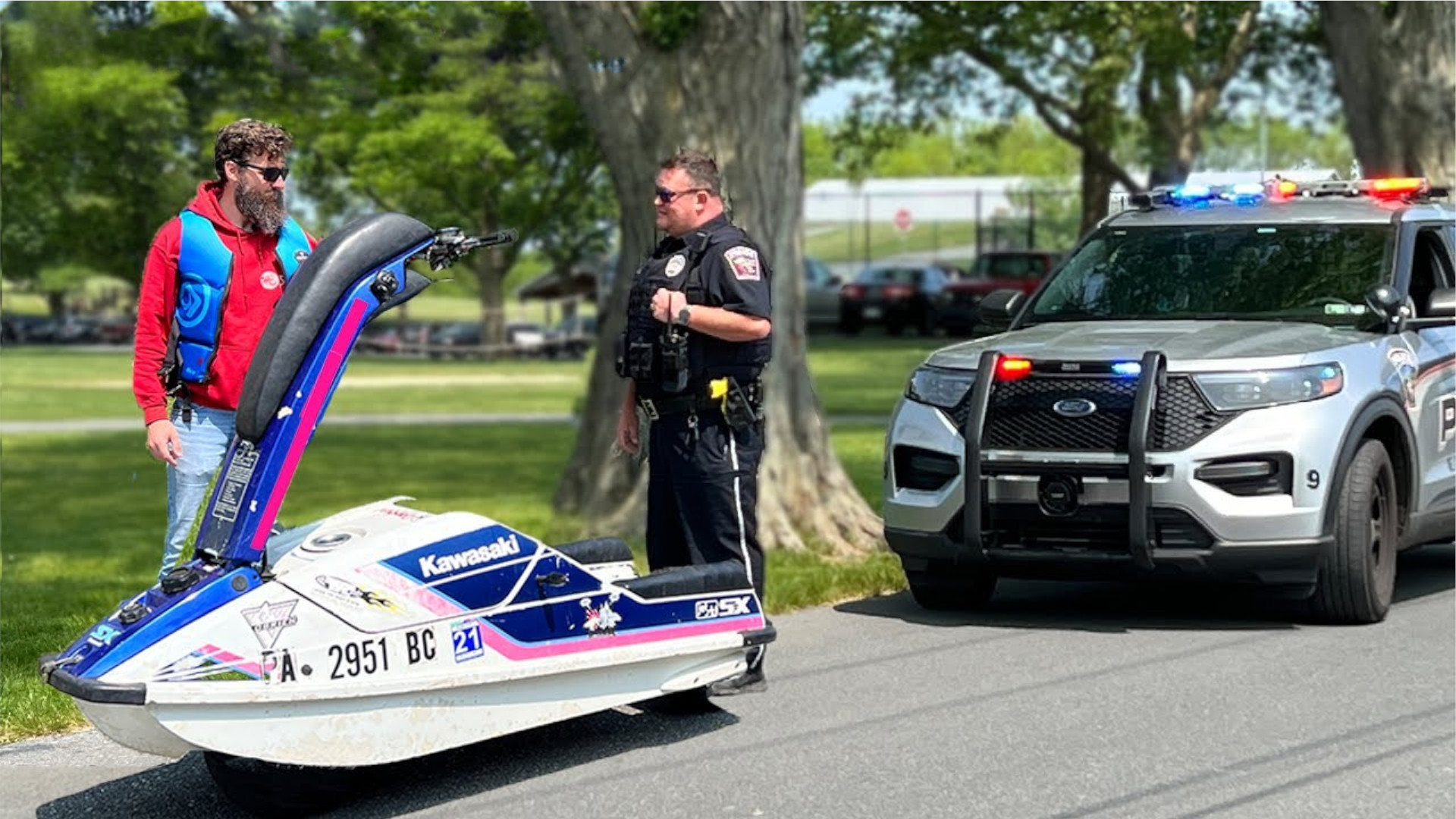 As is the norm, the video then shows the suspensionless jetski taking part in various escapades, from driving on grass to visiting the Chick-Fil-A drive-thru. A top-speed run got the wheeled jet ski up to 45 mph. As expected, the ersatz motorcycle also drew attention of law enforcement by virtue of its lack of plates, registration, and basic safety equipment.