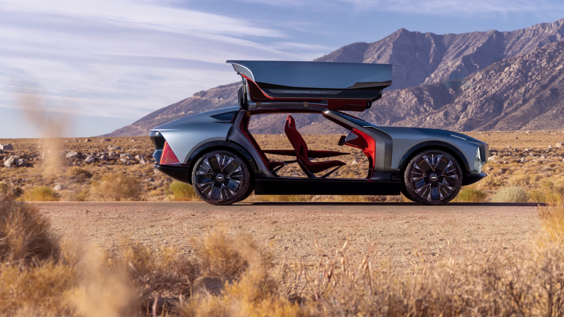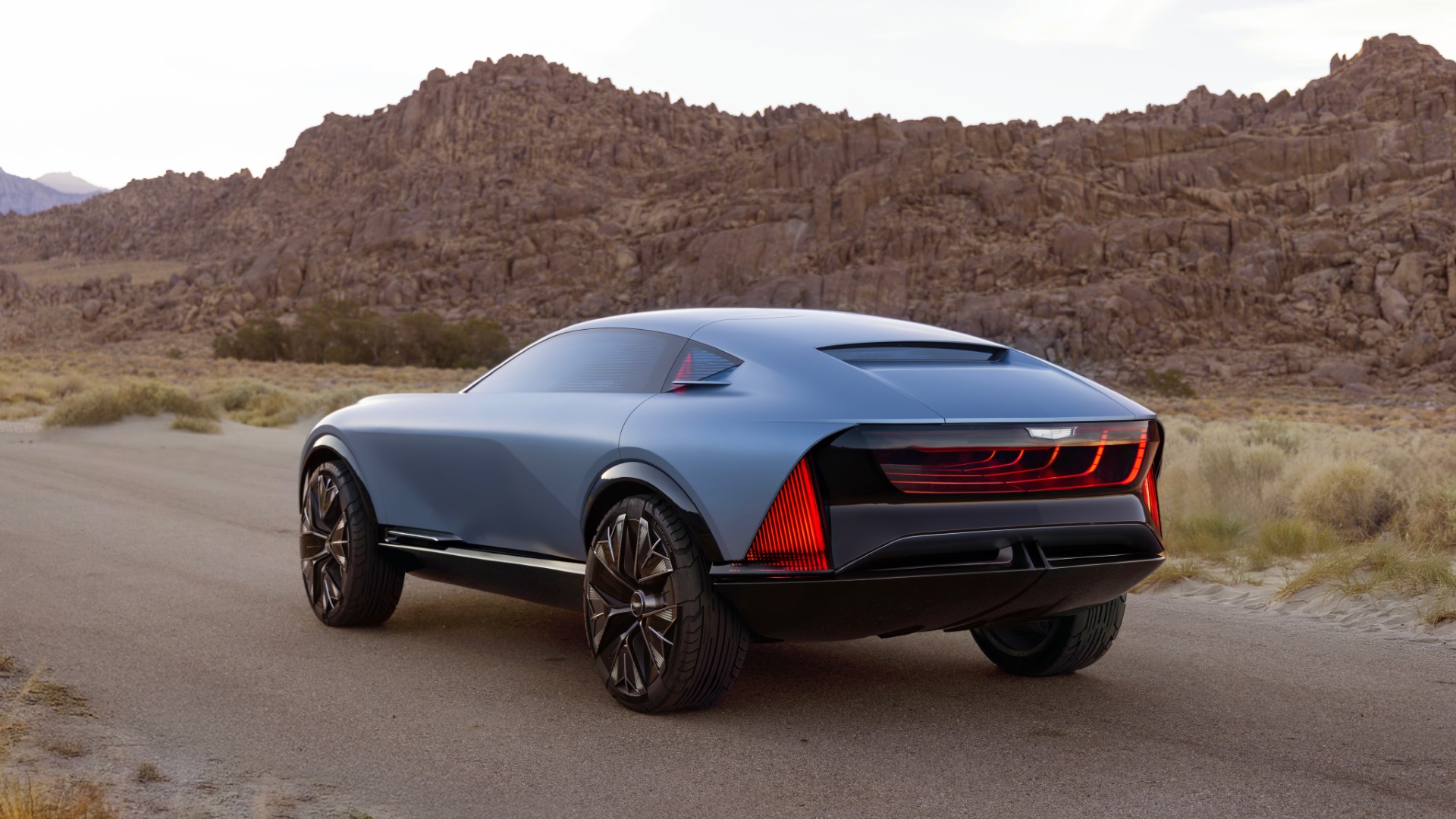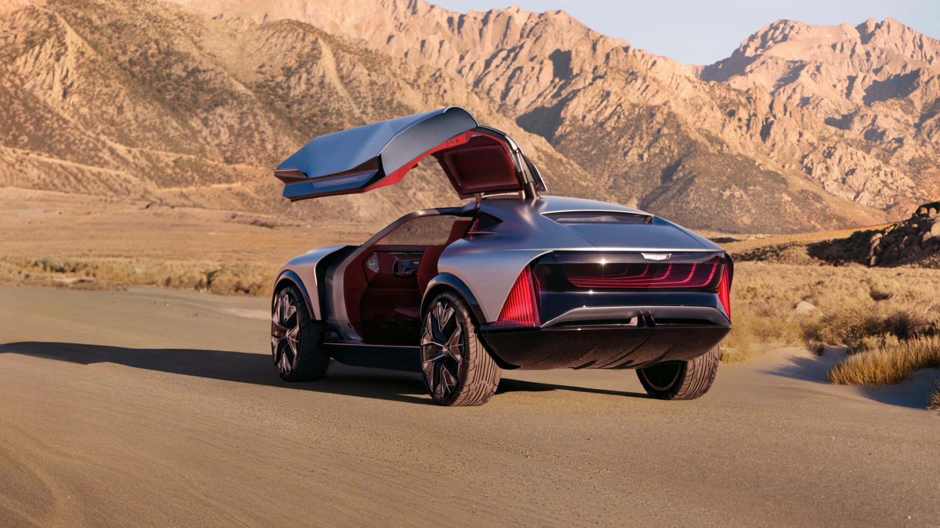 Cadillac’s pitching it as sort of an all-’rounder, but with a lean toward performance. There’s an e-Velocity mode (a nod to “V” mode in current performance Caddies) that gives it more edge when you’re on pavement. Meanwhile, “Terra” mode adjusts the air suspension for maximum off-road articulation.