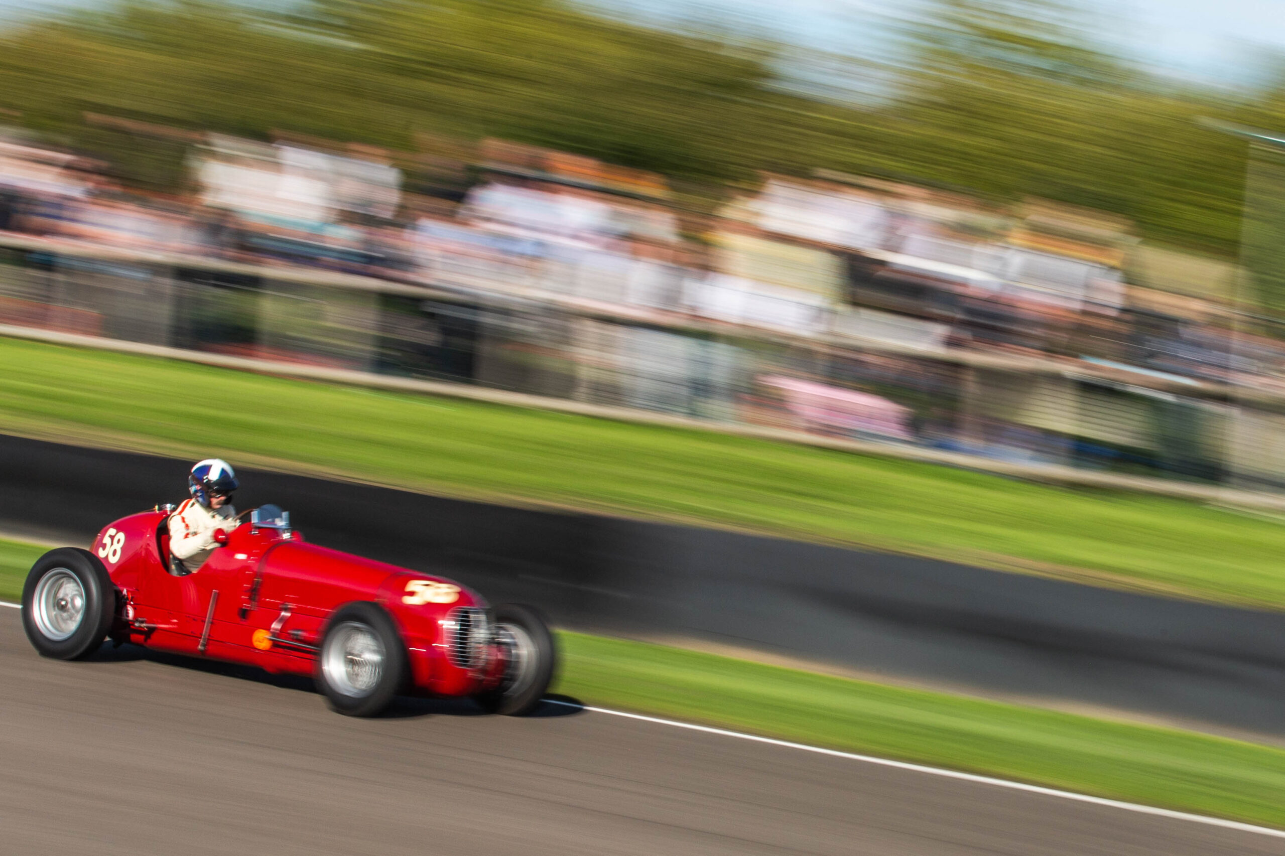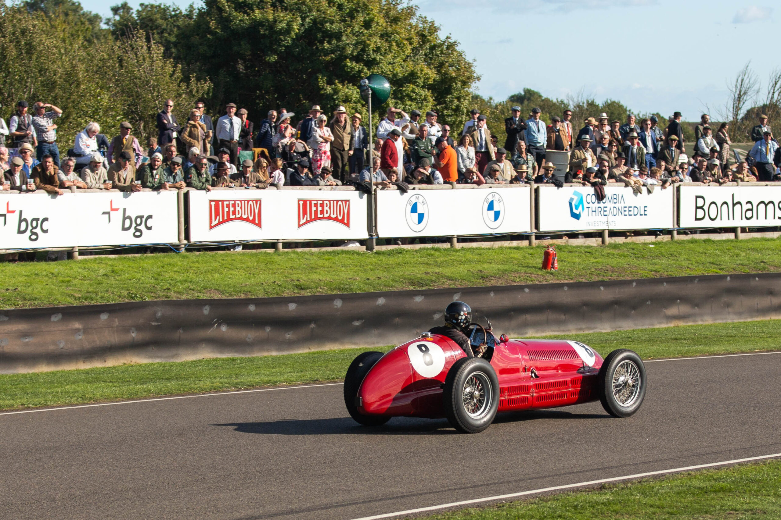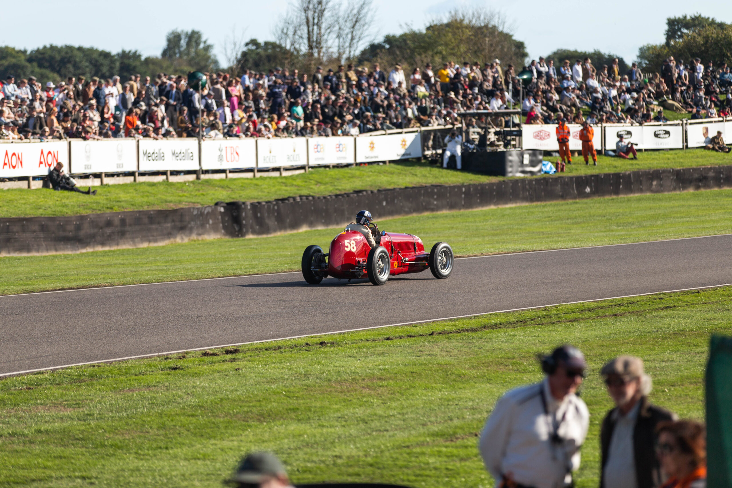 Taking place this year on Saturday afternoon, the Goodwood Trophy race was a 20-minute event for Grand Prix and voiturette cars that raced between 1930 and 1951. Seeing the drivers hurl these little things around corners was a spectacle. Some were louder than others, but everyone’s arms, upon approaching the right-hander I was posted up at, went mad sawing at the skinny wooden steering wheels. Plainly, these cars must be a handful to drive.