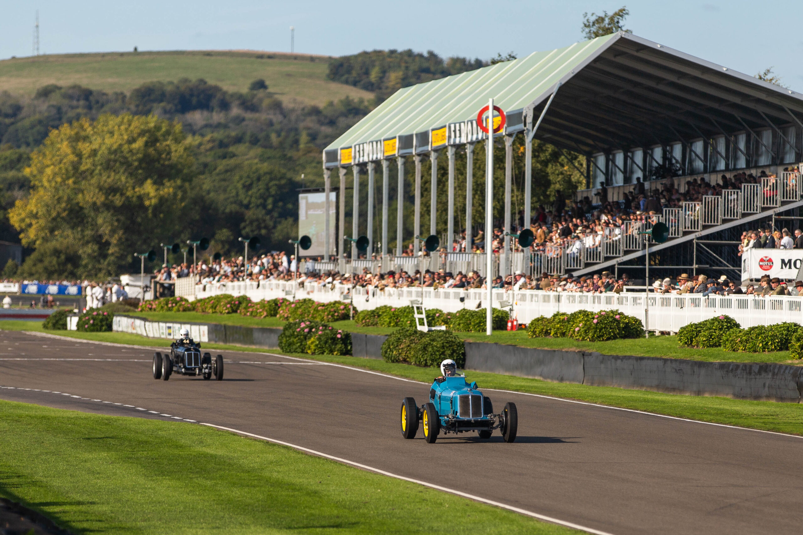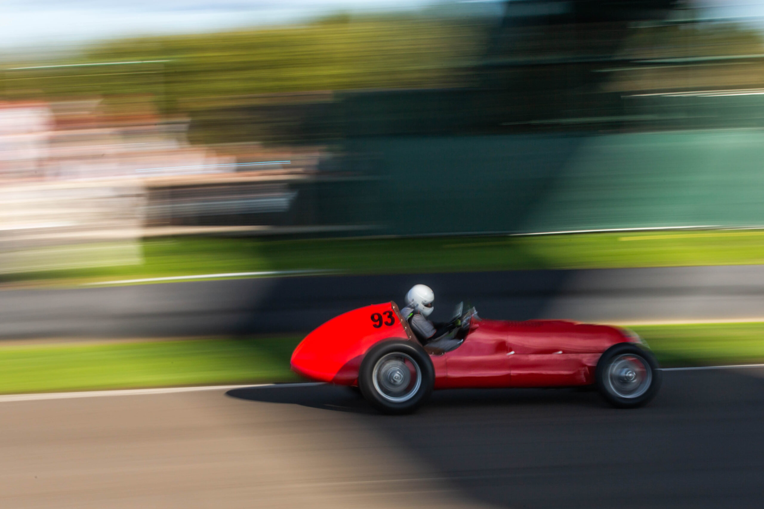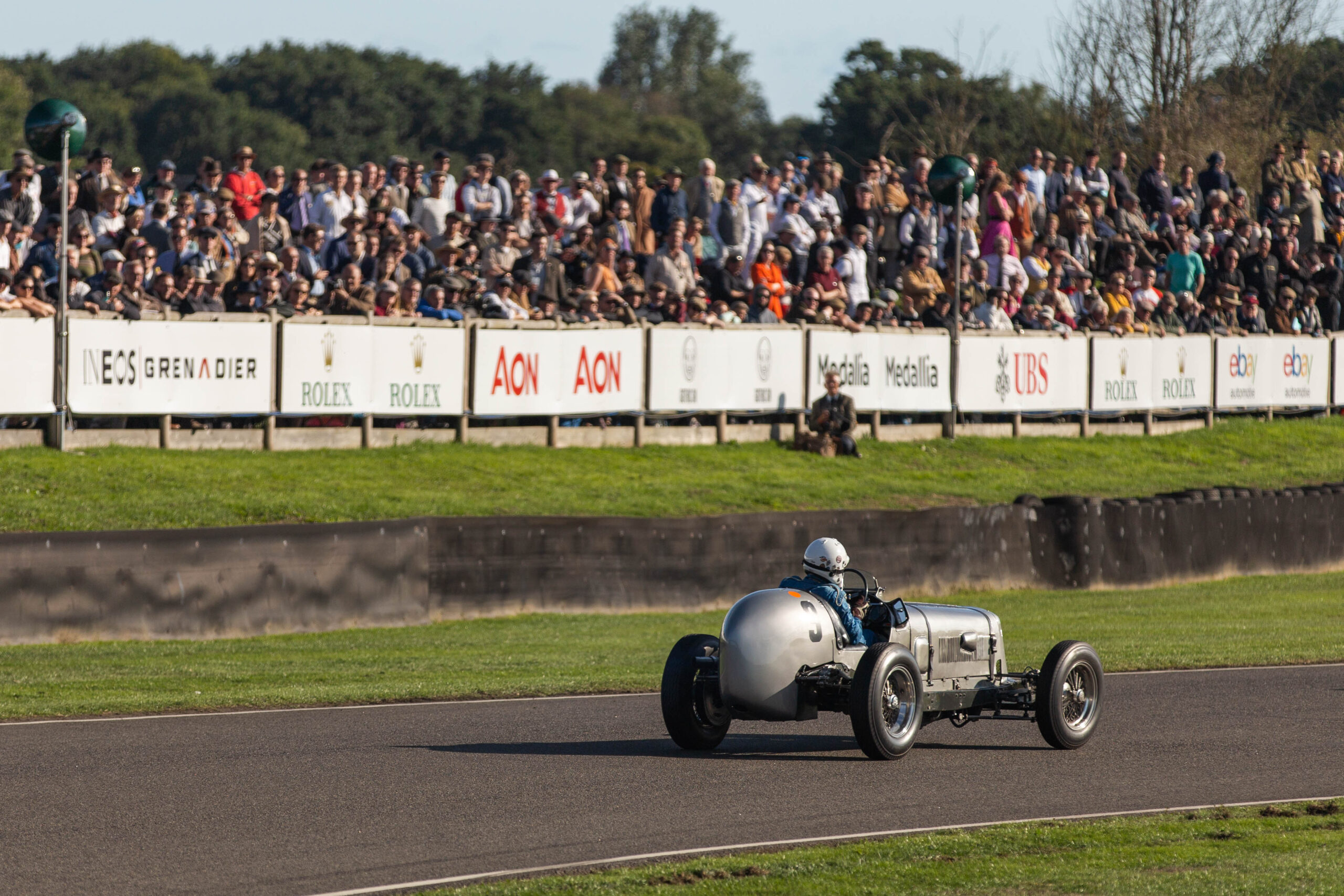 Taking place this year on Saturday afternoon, the Goodwood Trophy race was a 20-minute event for Grand Prix and voiturette cars that raced between 1930 and 1951. Seeing the drivers hurl these little things around corners was a spectacle. Some were louder than others, but everyone’s arms, upon approaching the right-hander I was posted up at, went mad sawing at the skinny wooden steering wheels. Plainly, these cars must be a handful to drive.