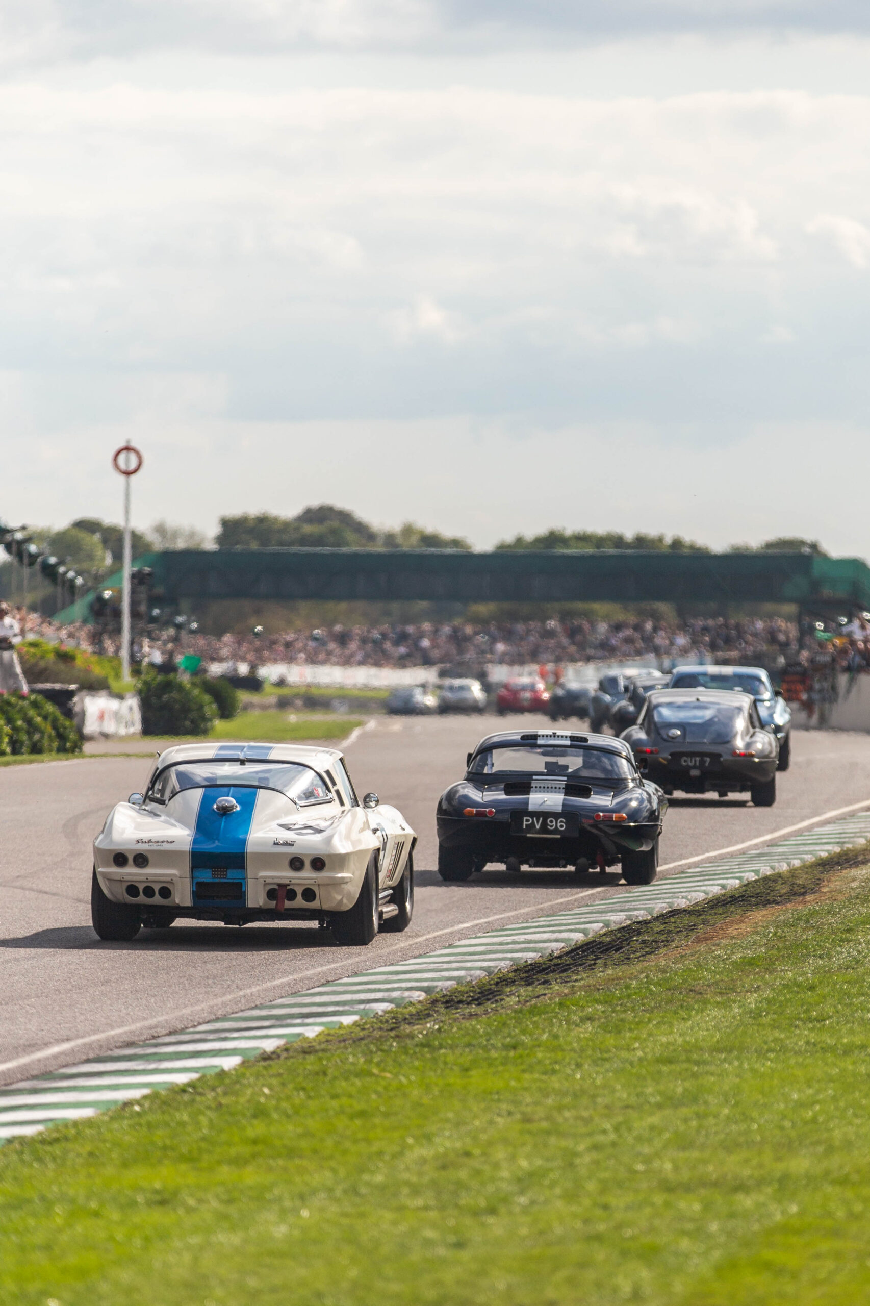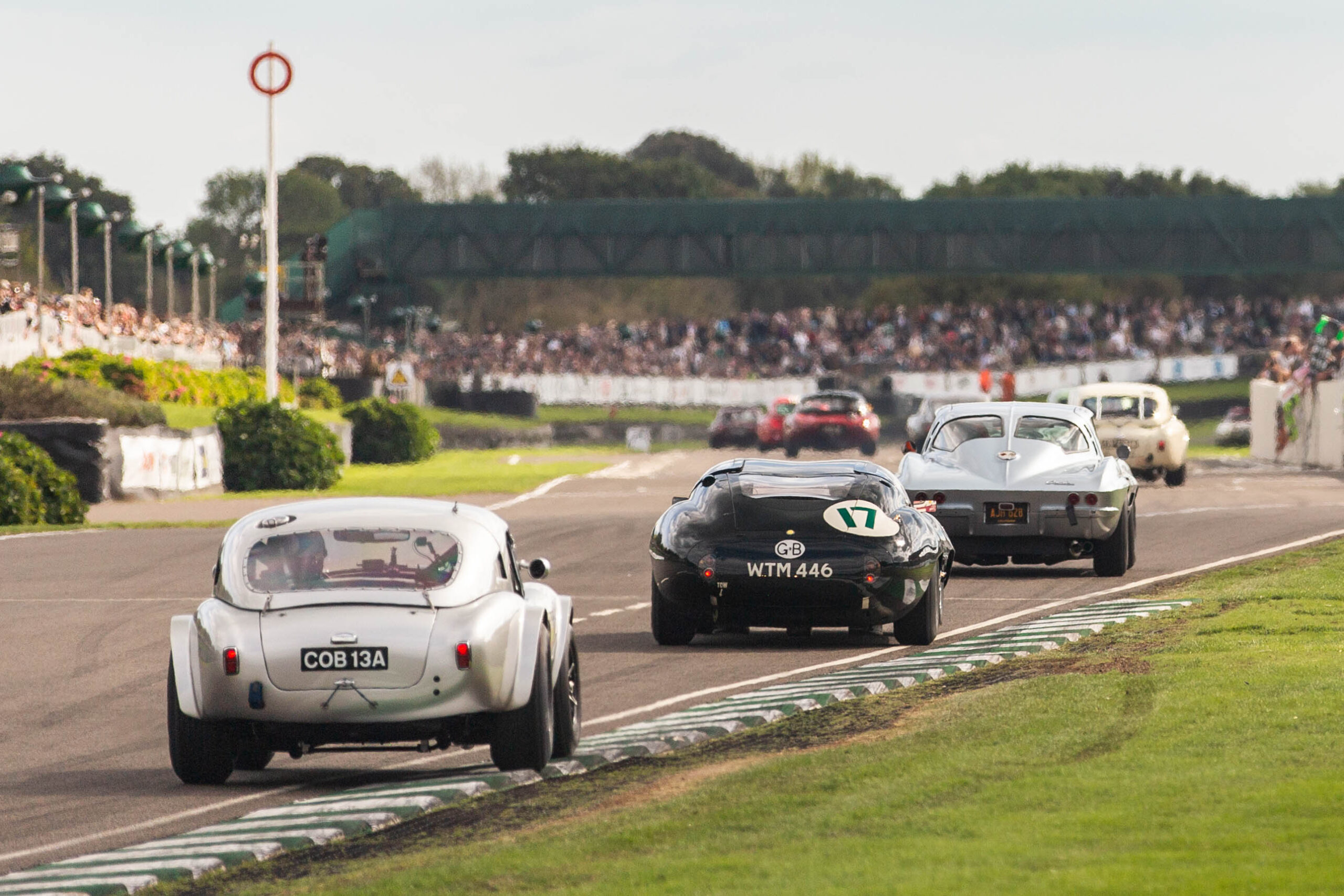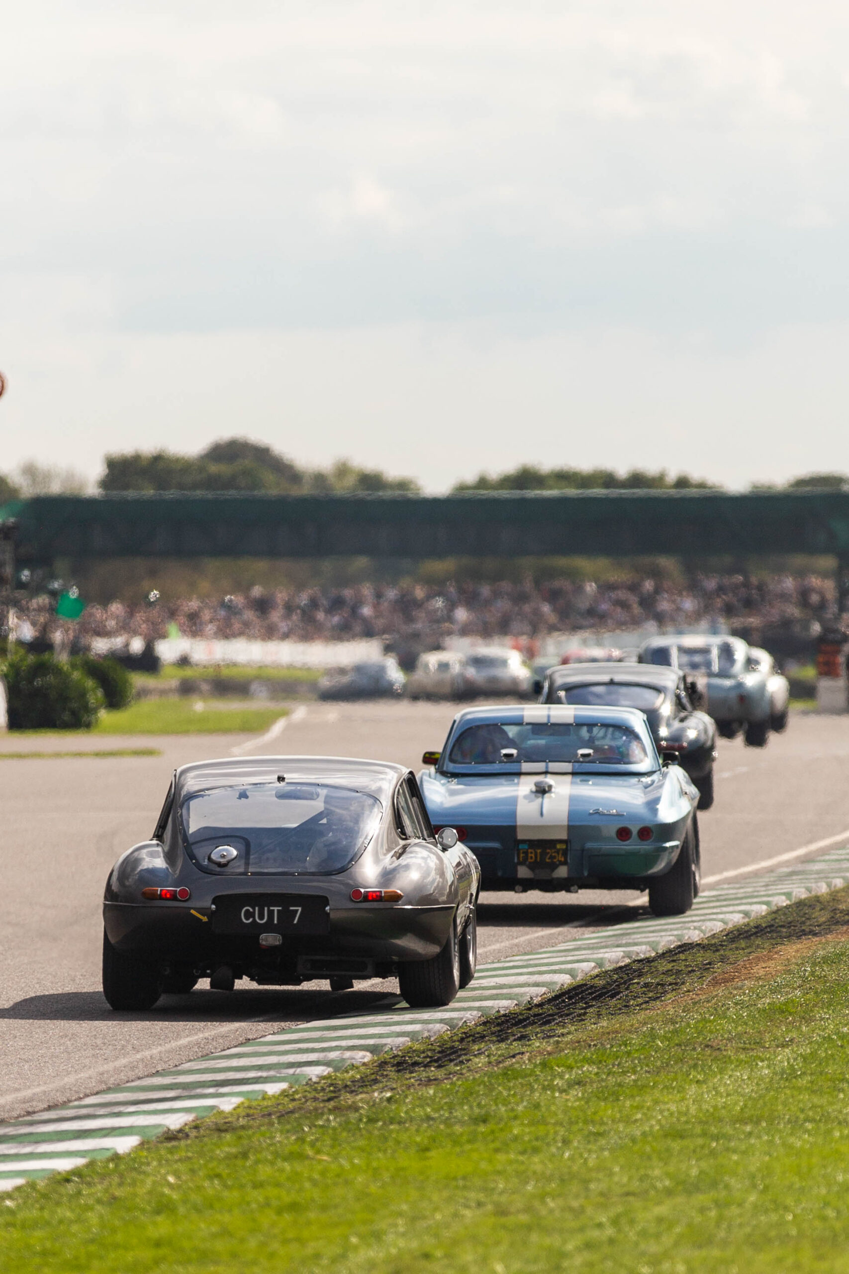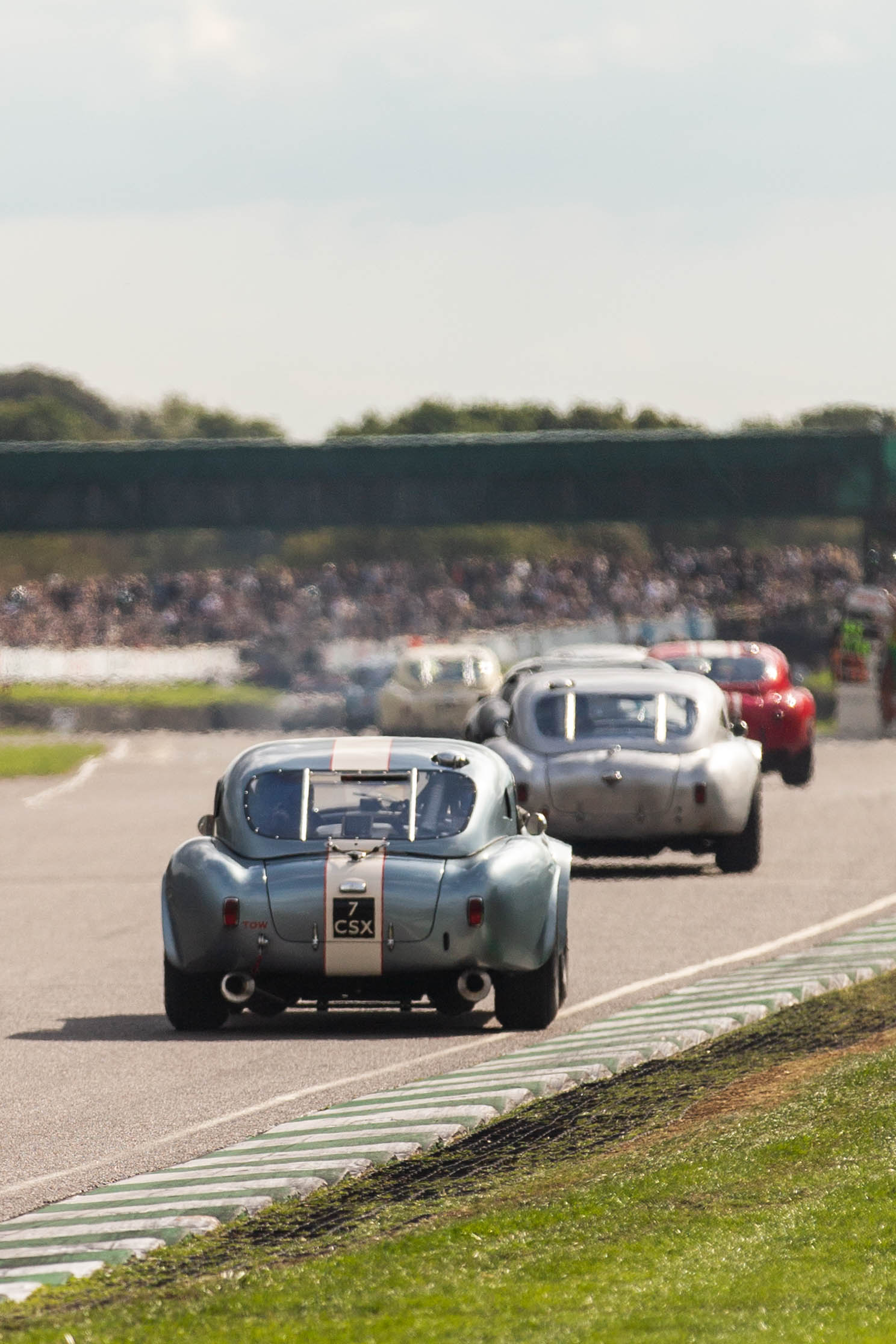 Sunday afternoon saw the Royal Automobile Club TT Celebration: an hour-long, two-driver race for closed-cockpit GT cars and prototypes, meant to capture the essence of the RAC Tourist Trophy races that took place in 1963 and 1964. This is where you see treats such as a Ferrari 250 LM, Jaguar E-Types (including two of the Lightweight models), Porsche 904 Carrera GTSes, a TVR Griffith 400, a few Chevy Corvette Stingrays, and more AC Cobras than you can count.