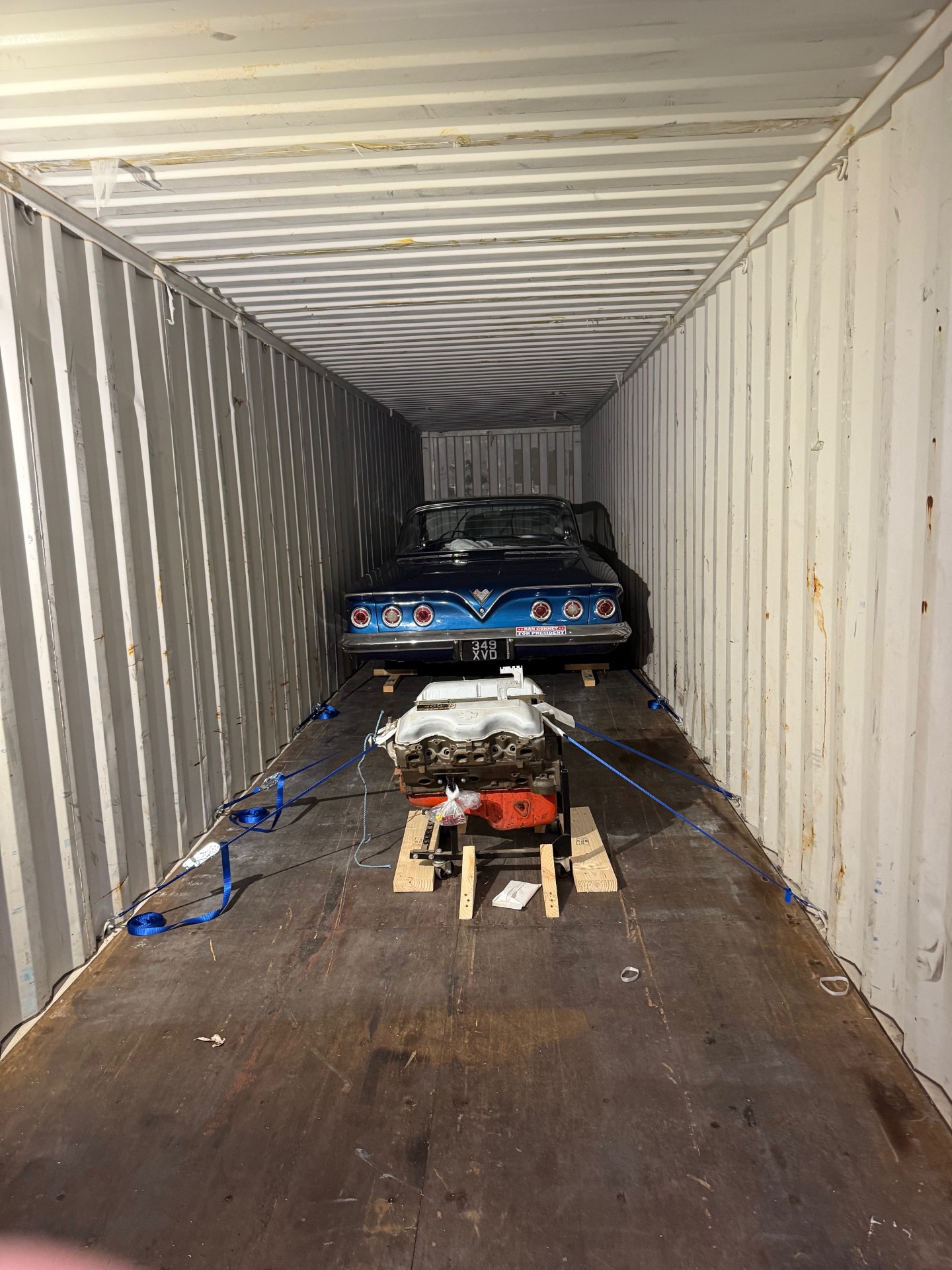 Rather than coming home to California at that point, it actually went back to England. A freelance motorsport journalist named Ed Foster purchased it with hopes of running it in a few historic races. That would have meant installing a roll cage, which the car definitely didn’t have back then. “It had a bench seat, it had a radio in it, everything,” Justin explained to me. As such, Foster restored it to its factory form with a different 409-cubic-inch V8 since the original was long gone.