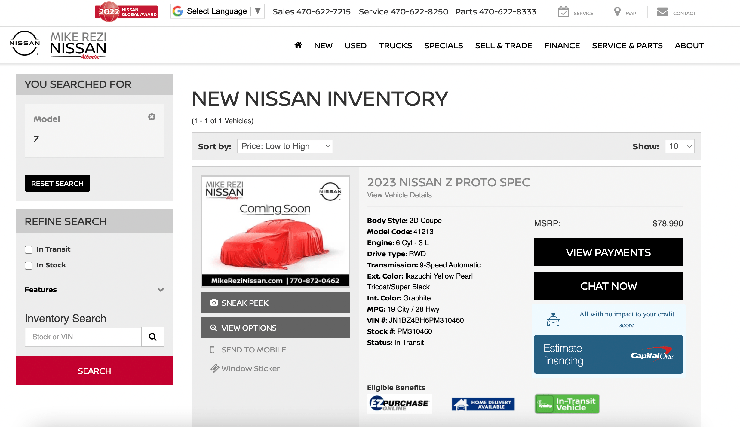 As pointed out by Carbuzz, Mike Rezi Nissan in Atlanta is openly listing its Z online for $78,990 “MSRP.” So much for undercutting the Toyota Supra.
