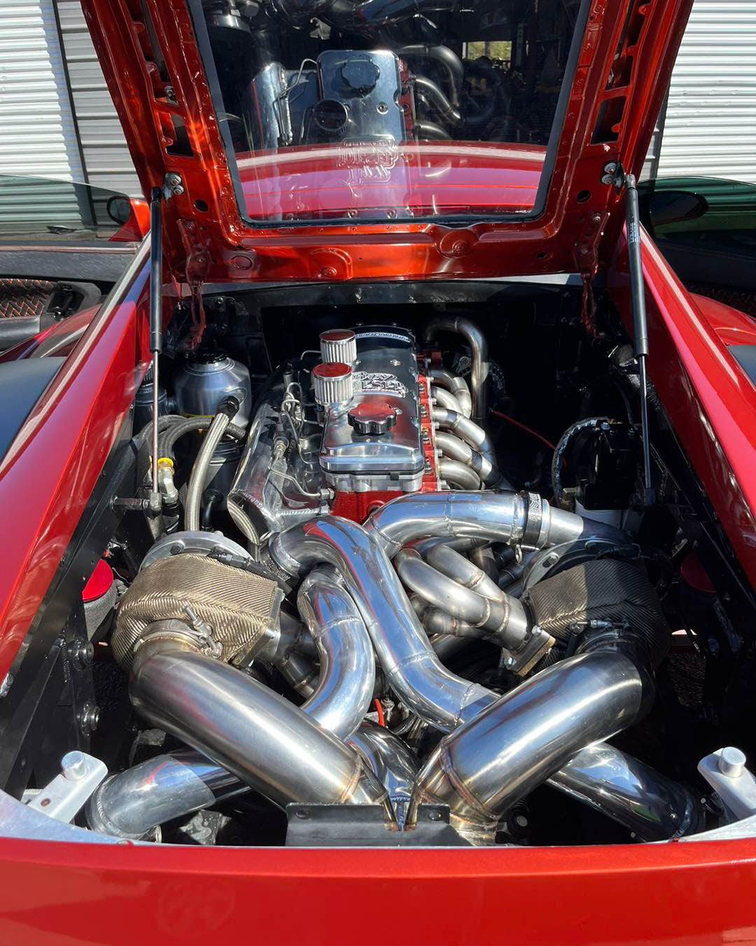 After straightening out what was left of the frame, a new quarter panel and hood were bought, to complete its body. Then the firewall had to be cut out and custom fabricated, so as to fit the monster Cummins diesel engine. Everything from the motor mounts, to the headers, to the intake manifold also needed to be custom fabricated to make the engine fit. All of that custom fabrication not only functions but turns the engine bay into a work of mechanical art.