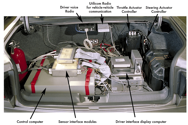 By 1994, the National Automated Highway System Consortium was formed to help tackle that task. The consortium was comprised of nine different entities: Bechtel, the California Department of Transportation, Carnegie Mellon, General Motors (including its subsidies, Delco Electronics and Hughes Electronics), Lockheed Martin, Parsons Brinckerhoff, and UC Berkeley’s California Partners for Advanced Transportation Technology program.