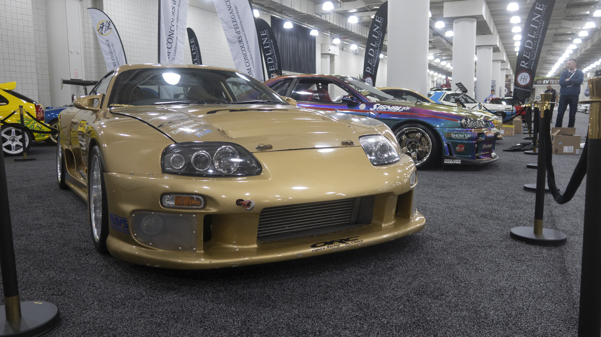 The gold Supra, however, stopped me in my tracks—that is the GT300 you may have heard associated with tuning legend Kazuhiko “Smokey” Nagata. Smokey has an accolade list longer than a CVS receipt, with some real innovations credited to him. But he is probably still best known for 200-mph highway hijnks in cars like the gold Supra in these images. To make a long story short, Smokey raised some notoriety (visibility for his tuning shop Top Secret) by hitting bonkers speeds on public roads. Not something we endorse, but, it was certainly a moment in time. This interview with him in Top Gear gets into more detail.