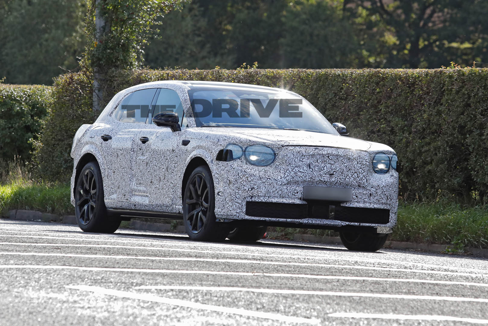 Don’t let the camouflage fool you. Despite the Bentaya- and Flying Spur-like lighting elements, which are actually mostly stickers, the camo-clad prototype looks nothing like a Bentley on sale today. Take note of the blunt, upright front end, wide lower intake spanning the front end, and large radar sensor array front and center.