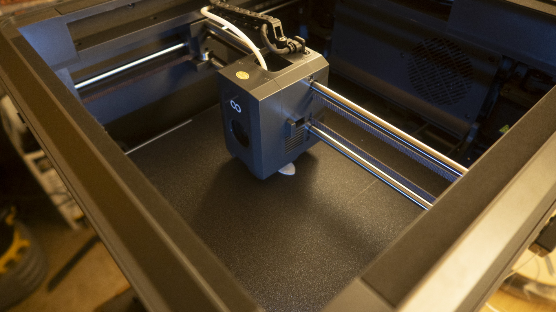 Another thing to note is that the printer is fairly large. Not so much by 3D printer standards, but it’s about four times the size of the paper printer you might already own. Plan to clear quite a bit of desk space wherever you plop this. You should also keep it on a heavy or reinforced table. I set mine up on a coffee table I thought was solid, but its legs wobbled like wet noodles once the Centauri started printing. Seriously, the printer vibrates quite a bit, and I think arresting it will help long-term life and print quality.