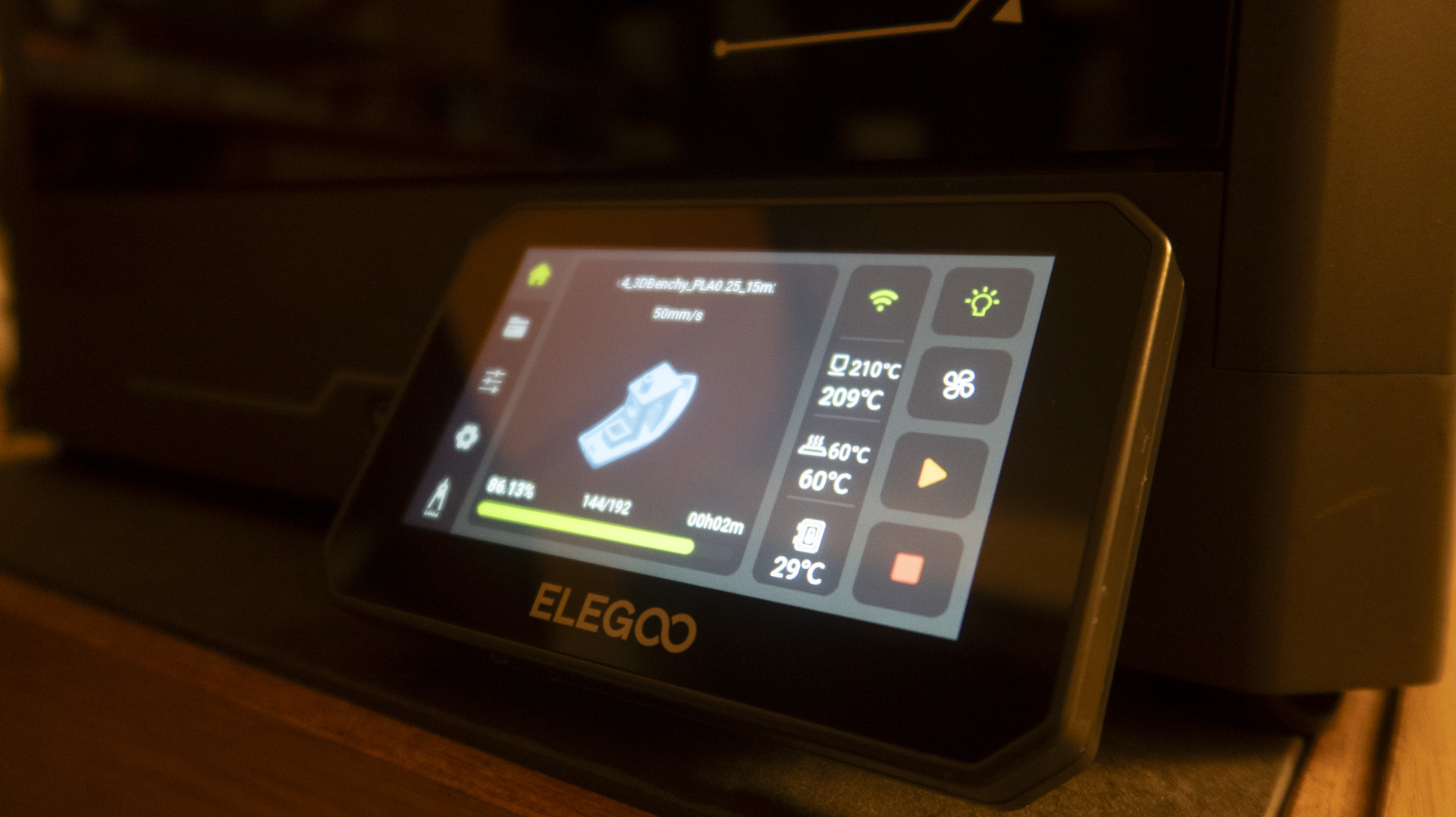 With the new STL file exported, fed into the Elegoo Slicer for a G-code, and then both those files fed to the printer via USB stick, I was finally ready to encounter my next problem.