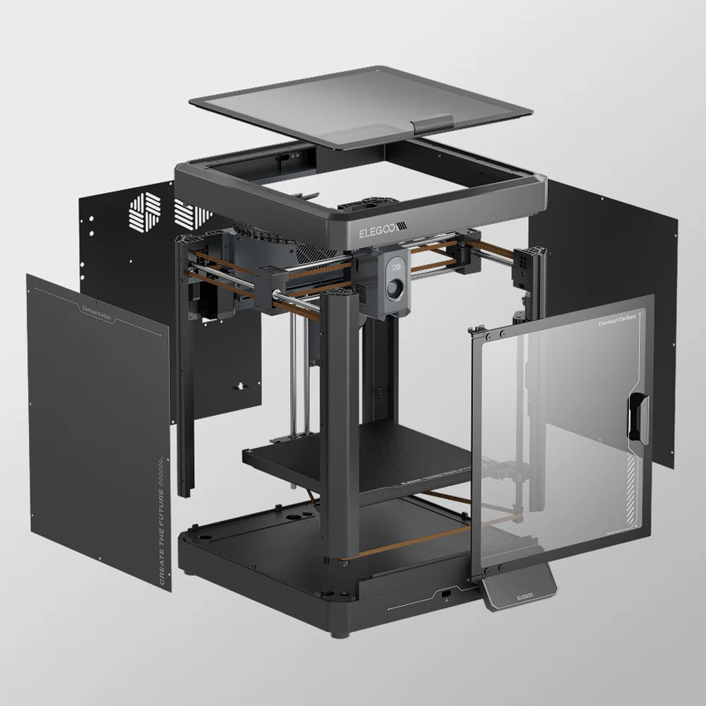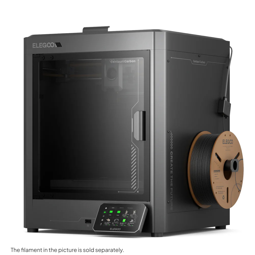It feels a little silly to care how cool a tool looks, but I have to admit, the Centauri Carbon is a really impressive tabletop decoration. It looks like something out of a Mass Effect video game without being cheesy—I don’t even mind the “CREATE THE FUTURE” text on the side. The parts feel high quality, the touchscreen interface is gorgeous, responsive, and intuitive, and the toolhead (the thing that actually moves around and poops out hot plastic to make your models) is relatively easy to service.