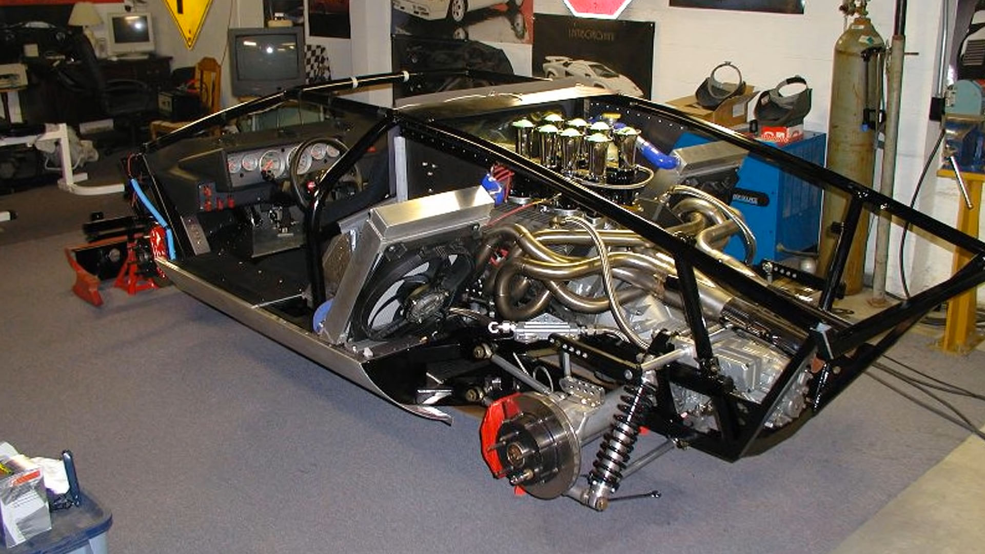 It took Imhoff 17 years to build the car starting in 1990, constructing the frame and hand-beating every panel to perfection. It even has some real Lamborgini parts on the outside to get the car as close as possible to the real thing. When it was done, complete with a Ford 351 Cleveland V8 good for roughly 500 horsepower, he punched a hole in the side of his basement to get it out. He enjoyed his labor of love for many years, but later decided to sell it after claiming he couldn’t take good enough care of it, and that completing the project took a toll on his health and personal life.