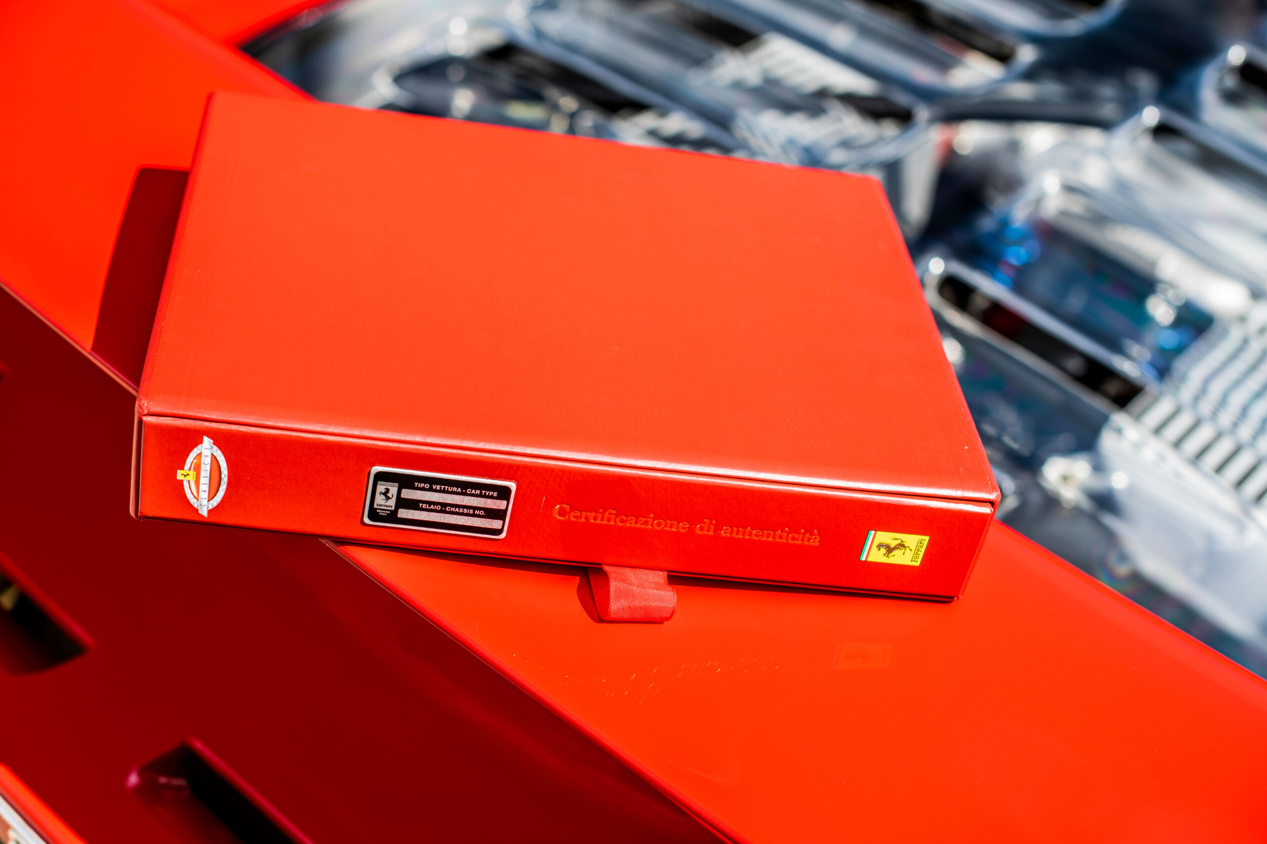 The car has less than 2,900 miles on the clock and has received full Ferrari Classiche certification. This verifies that the car has its original engine, gearbox, chassis, and bodywork. The F40 was most recently given a major service in 2019, including a replacement of its fuel bladders. They remain valid and in-spec until 2028, which should be of comfort to the car’s new owner. Other inclusions with the sale include a full history file, owner’s manual and service book, toolkit, and the car’s original front spoiler. There’s also a set of Schedoni luggage to match, built specifically for the F40.