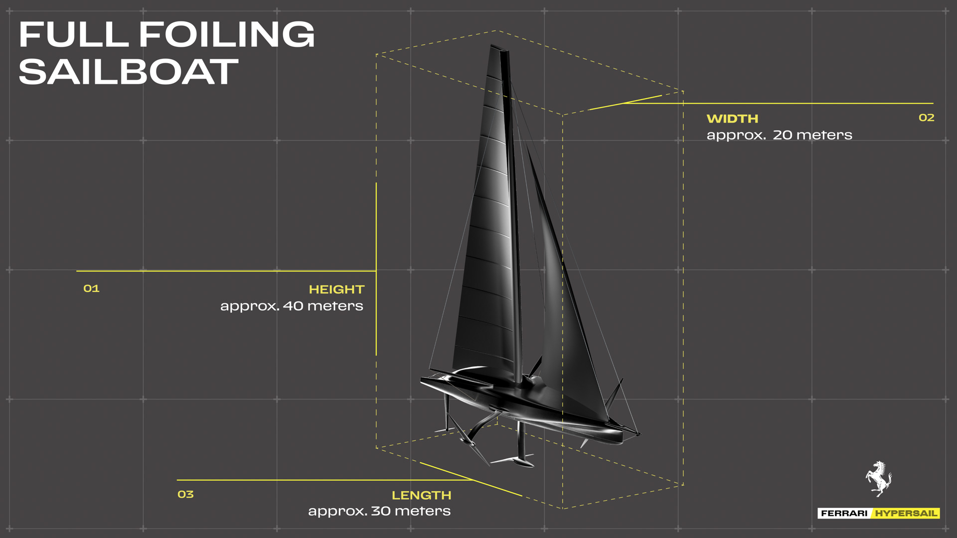 Ferrari also proudly proclaimed that the Hypersail boat, scheduled to be unveiled in its final form next year, will be entirely powered by wind and the sun (solar power). It has no combustion engine at all.