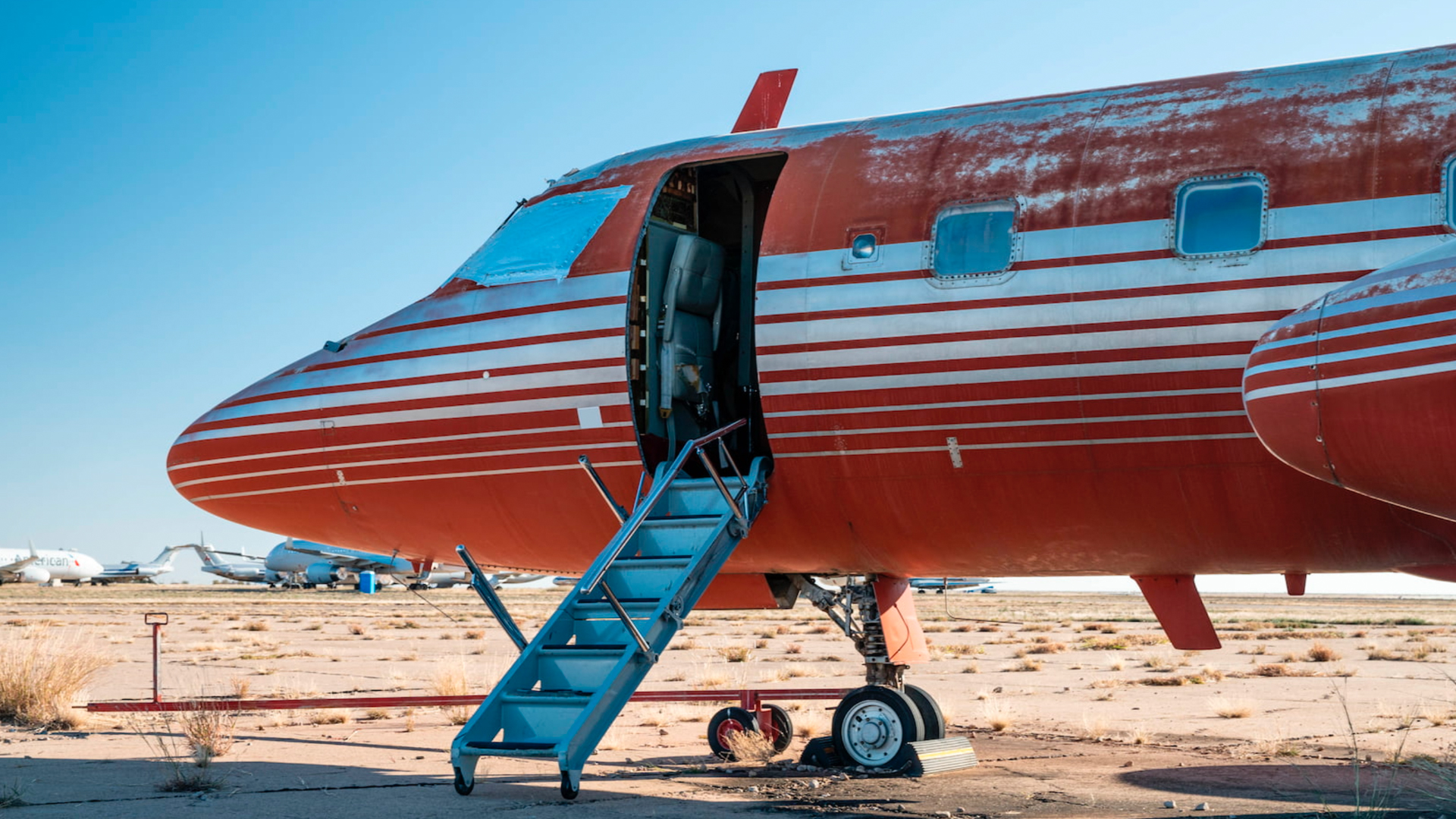Since Elvis sold the plane in 1977, it’s changed hands quite a bit. It once even lived in Saudi Arabia before it made its way to Roswell, New Mexico, where it currently resides in less than fly-worthy condition. There’s a big hole in the fuselage, its windows are seemingly held in place with duct tape, there’s a chunk missing from its tail wing, and its wings look like there missing bits as well. Oh, and its twin Pratt & Whitney engines were removed, along with some of its cockpit gauges. I’m no aviation expert but I believe it needs those to fly.