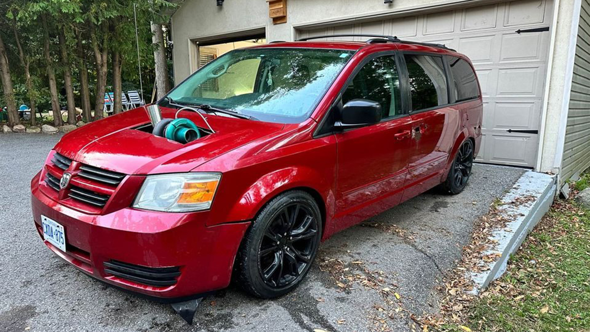 The seller, Josh Sprung, claims to have built the van in just five days and chronicled his brief build process on his personal TikTok. Sprung says that he spent a maximum of three to four hours per day installing a turbocharger from a Mack truck onto the 3.3-liter V6 of the Grand Caravan, which is currently listed for sale on Facebook Marketplace for 3,500 CAD ($2,600). Even with the claimed speedrun-worthy build time, it has a complete list of supporting parts and some truly shadetree-level engineering.