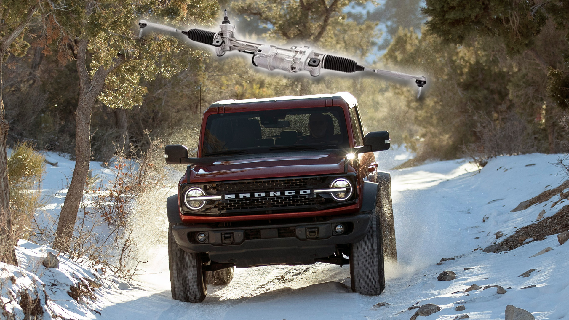 The Ford Bronco follows the old-school off-road formula in a few key ways—you can spec it with huge tires, a front locker, and even a crawler gear. But what’s decisively more modern about the Bronco is its independent front suspension; there’s no solid axle to be found up there. IFS is meant to provide a better ride and better high-speed performance, though it has its weaknesses. Ford aims to remedy them by offering owners a new severe-duty steering upgrade kit.