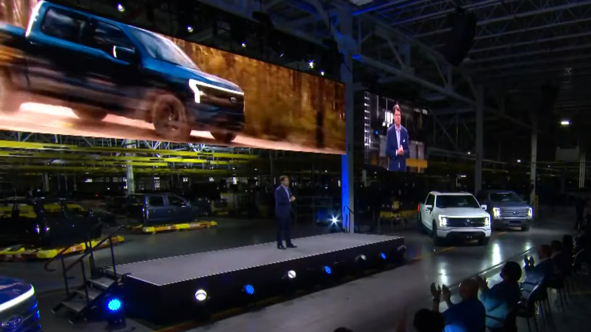 “I wish we could bring you all down there,” said Jim Farley while addressing attendees. “But we’re already pushing dirt down in Blue Oval City in Tennessee for another electric pickup truck that’s different than this one.”