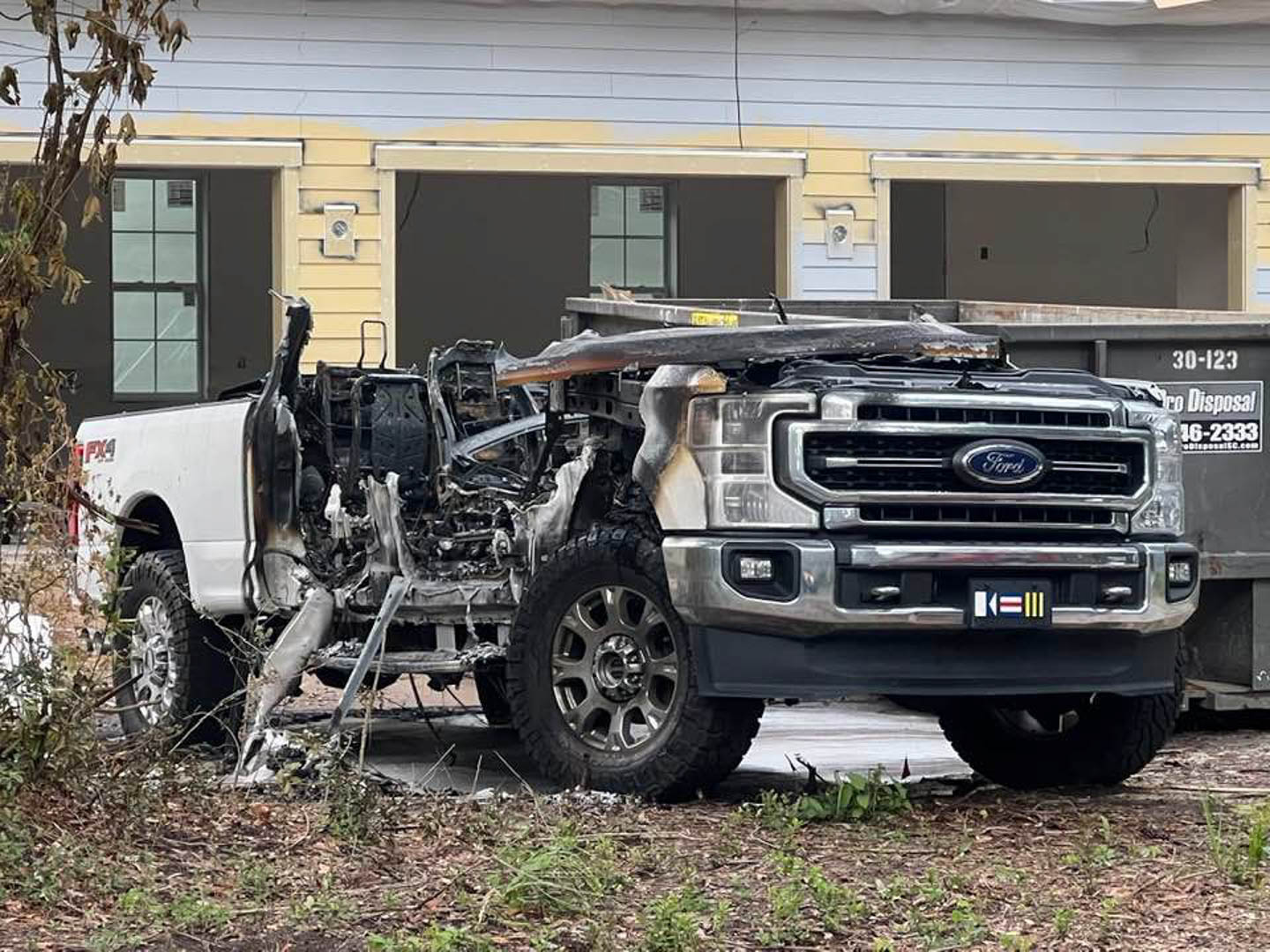 During a recent, intense thunderstorm in Beaufort, South Carolina, a Ford F-250 Super Duty was damaged by a lightning strike, causing the entire cab of the truck to catch fire and melt. After the fire was put out, the only remaining parts of the truck were the front fascia, the driver’s side front fender, and the bed. Thankfully, no one was injured.