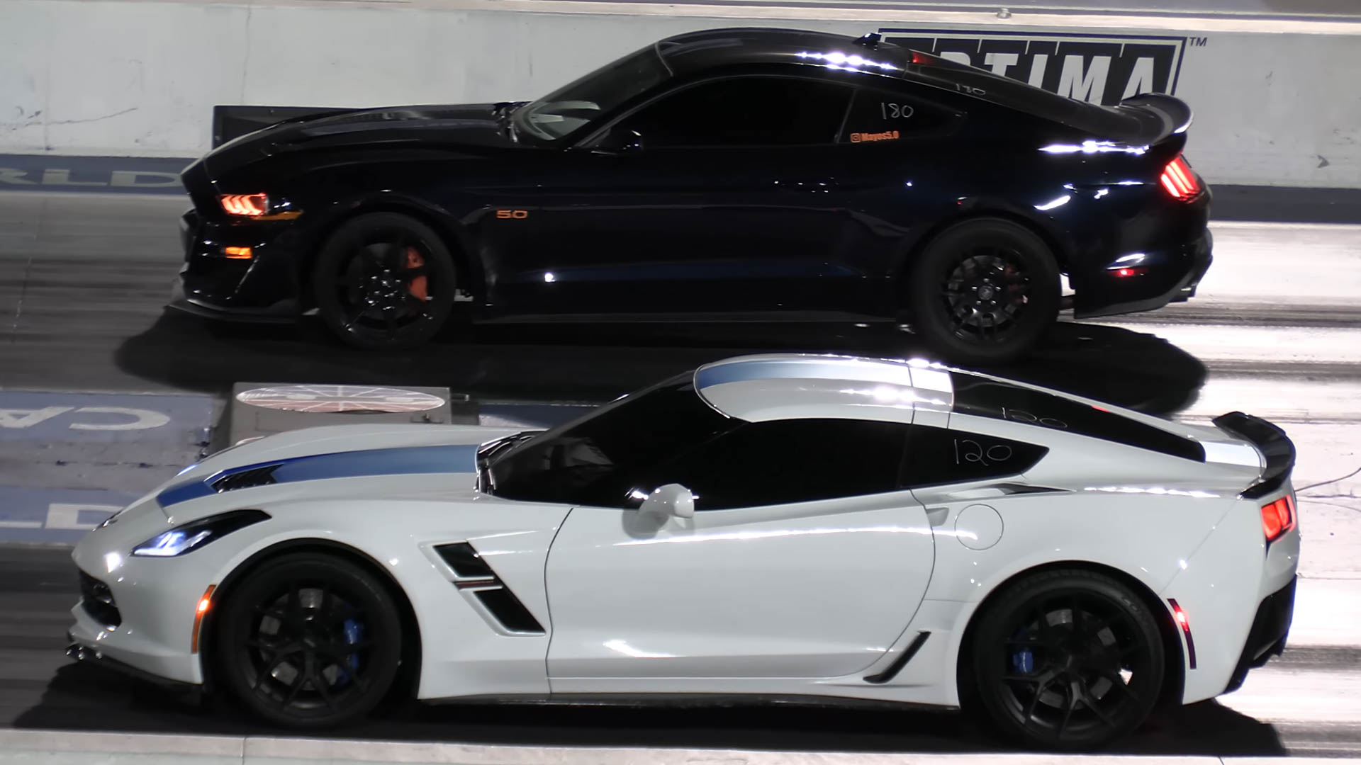 You don’t need to read the headline to know how this drag race ends. As soon as the S550-generation Mustang GT lined up next to the C7 Corvette, we all knew where the Mustang was going —into the wall.