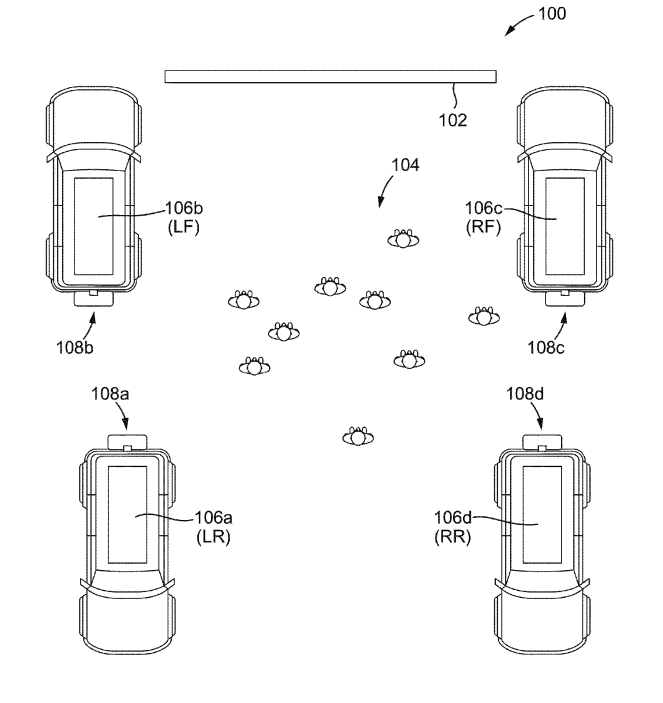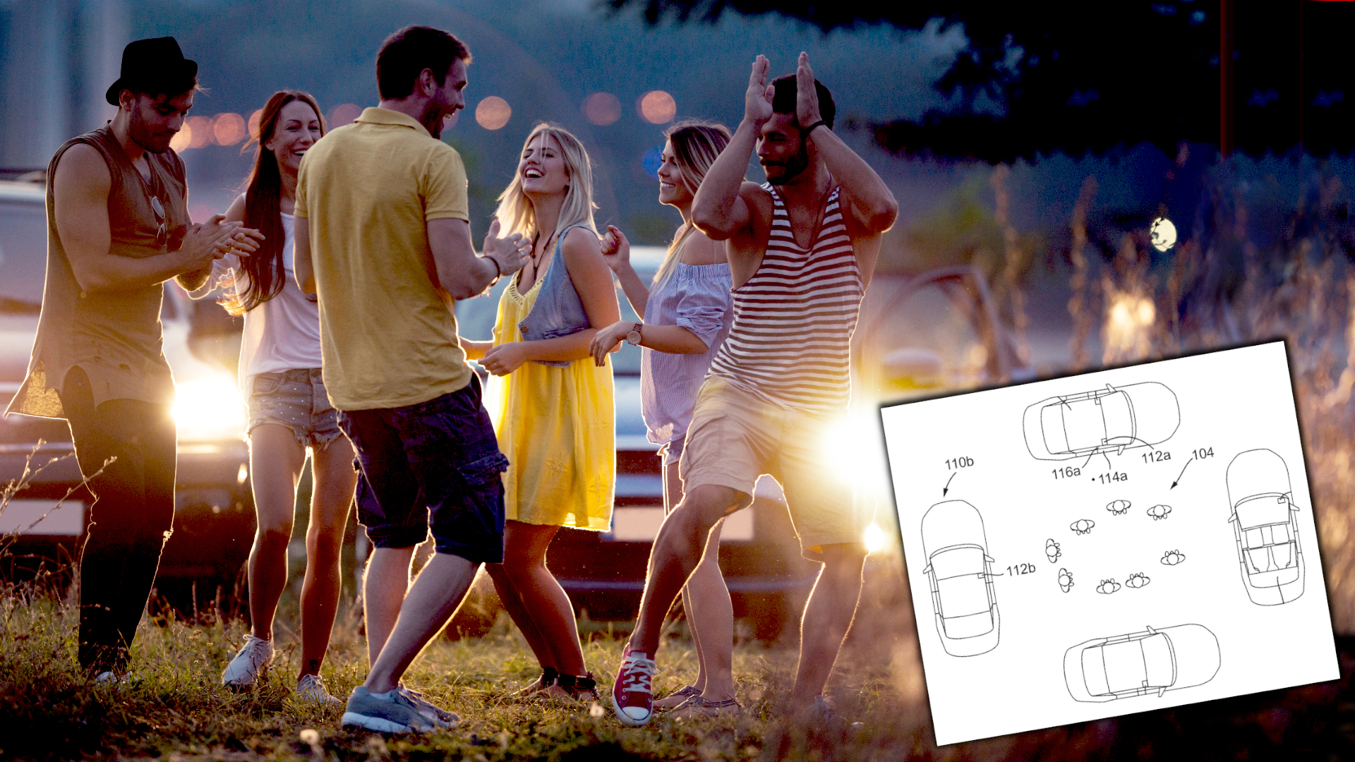 The patent was published by the USPTO on April 20 under the underwhelming name of the “Multi-Vehicle Audio System.” The clever idea is that multiple vehicles could have their audio systems wirelessly synced up to act as individual speakers in a large-scale stereo or surround sound configuration. For example, two vehicles could be parked on either side of a party, and assigned to act as the left and right speakers respectively. Each vehicle will then play the appropriate sound for its assigned channel.
