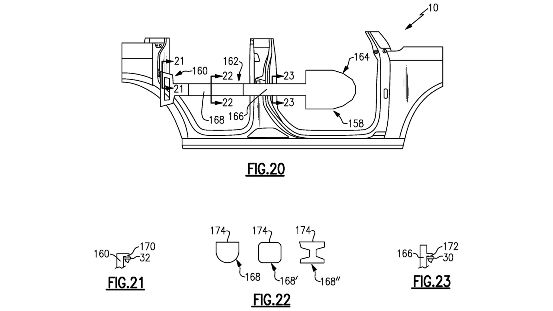 The patent app, appropriately titled “ACCESSORIES SUPPORTED BY DOOR STRIKERS OF MOTOR VEHICLES,” describes a lot of different stuff. It explicitly mentions ladders, storage containers, cupholders, tables, and lights, though the full scope of what could be attached is even more extensive. The document also says some of these items are dual-purpose, noting that they “are useable as a step when mounted to the vehicle, and are also useable as a tool (i.e., as a shovel, flashlight, bit driver, socket wrench, and/or hex wrench) when removed from the vehicle.” So not only is Ford selling you a useful gadget, but it’s also selling you a set of tools.