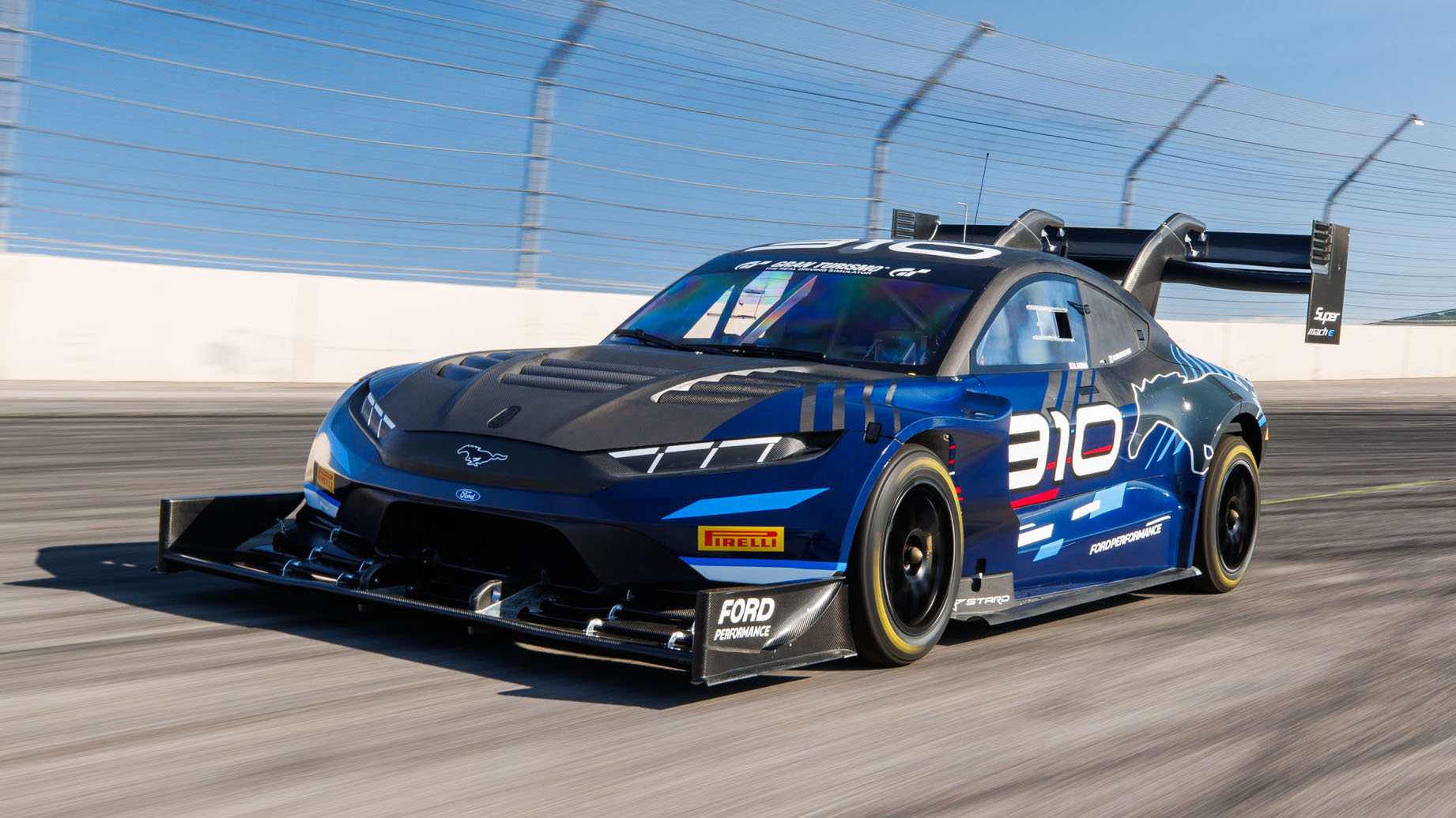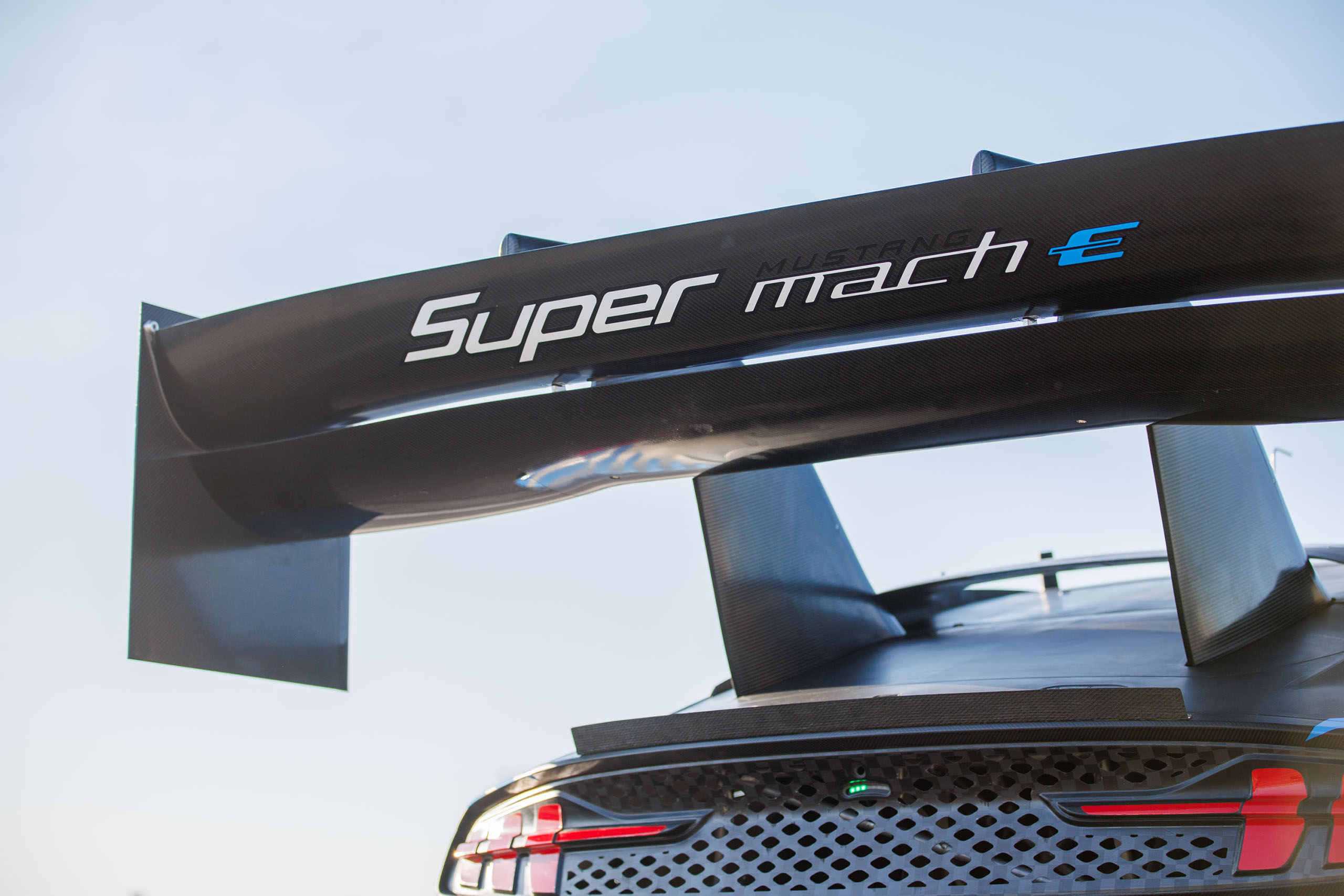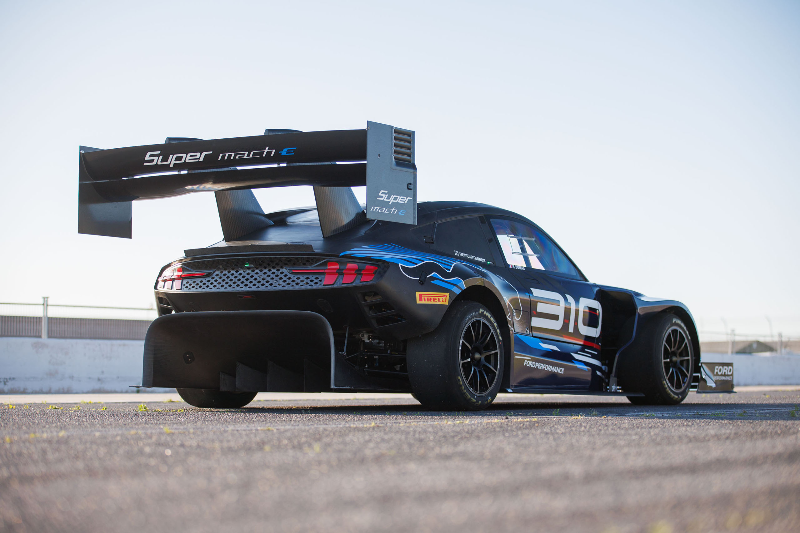 Technically, the new Super Mustang Mach-E comes in two flavors. The version that Dumas will pilot at Pikes packs three motors (one front, two rear) with a combined output of 1,421 horsepower. However, there’s an even more extreme variant with four motors (two front, two rear) to achieve a 2,250-hp total.