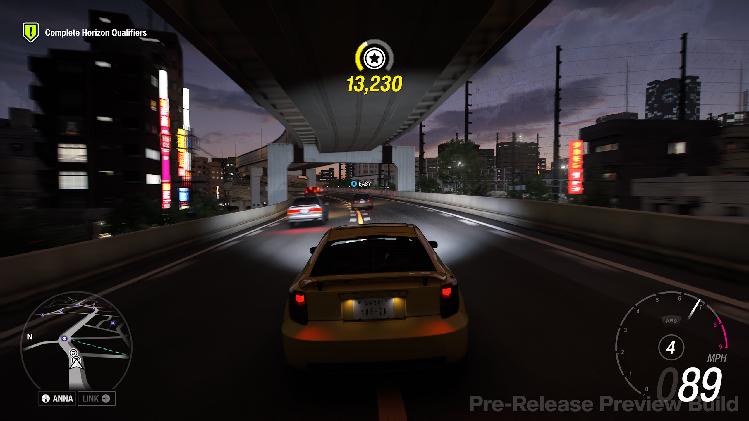 About that city: Playground rates it as five times the size of FH5’s Guanajuato. I would say that while I’m sure it is indeed that big, it feels a little more intimate than that, because this urban zone is more vertical than horizontal. There’s plenty of layering of expressway routes over city streets, with landmarks like the Tokyo Tower and Rainbow Bridge always seemingly perfectly framed by skyscrapers. Yes, the roads are wide—frankly, a smidge wider than I would’ve preferred, while fully cognizant that Playground couldn’t make them authentically claustrophobic and fun for racing at the same time.