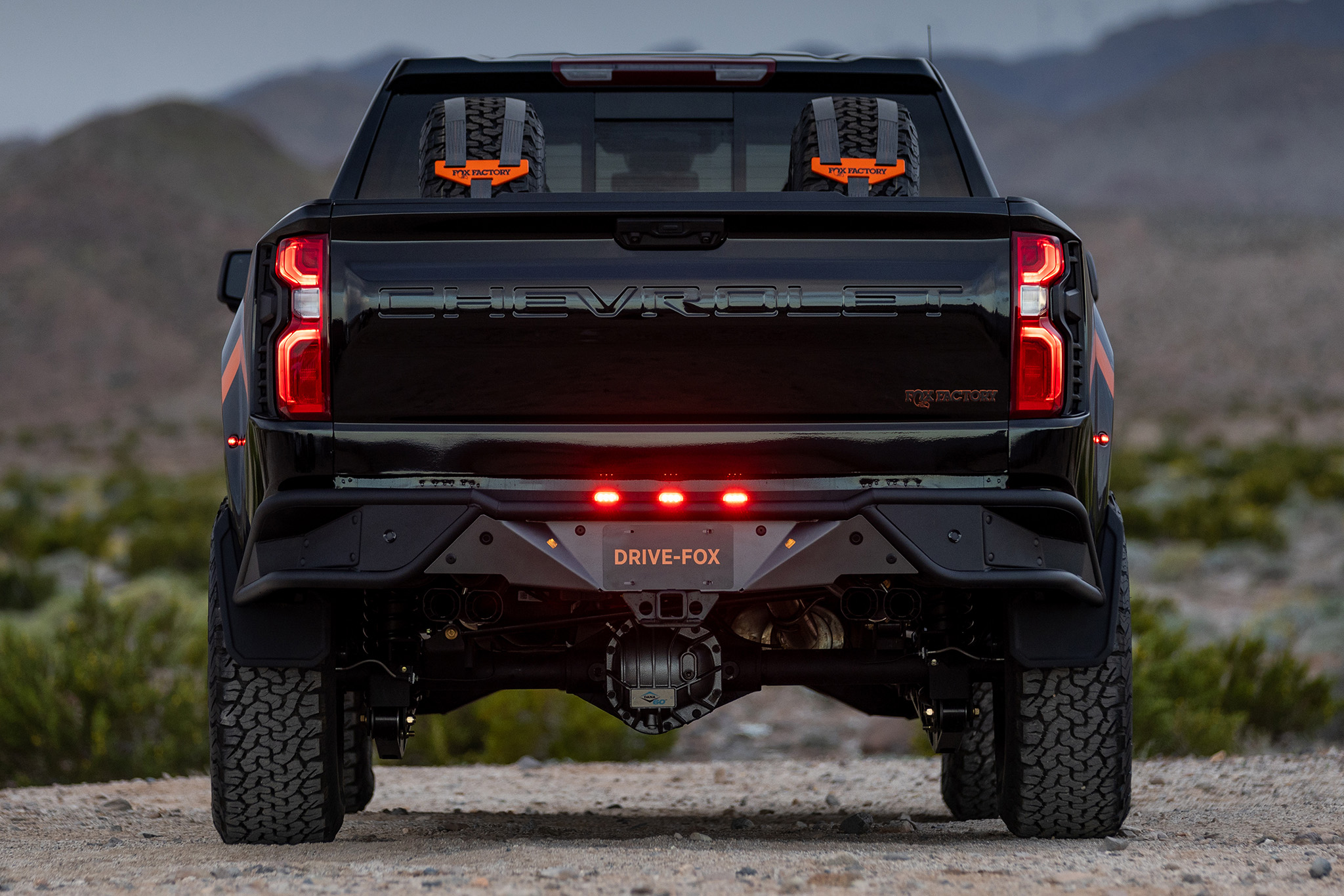 Just like in the F-150 Raptor, the Fox Live Valve shocks in this Silverado pick up on acceleration, braking, and steering cues while analyzing the terrain every few thousandths of a second. Because the suspension communicates with the truck’s ECU and chassis systems, it’s able to optimize compression and rebound base valves for that exact moment, resulting in an unbeatably smooth and stable experience. Rob Stanford, Fox’s director of electronics and software, said it took multiple teams of drivers and engineers three years to make this all work seamlessly in the background with the Silverado’s computers.