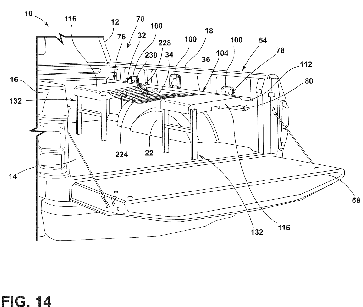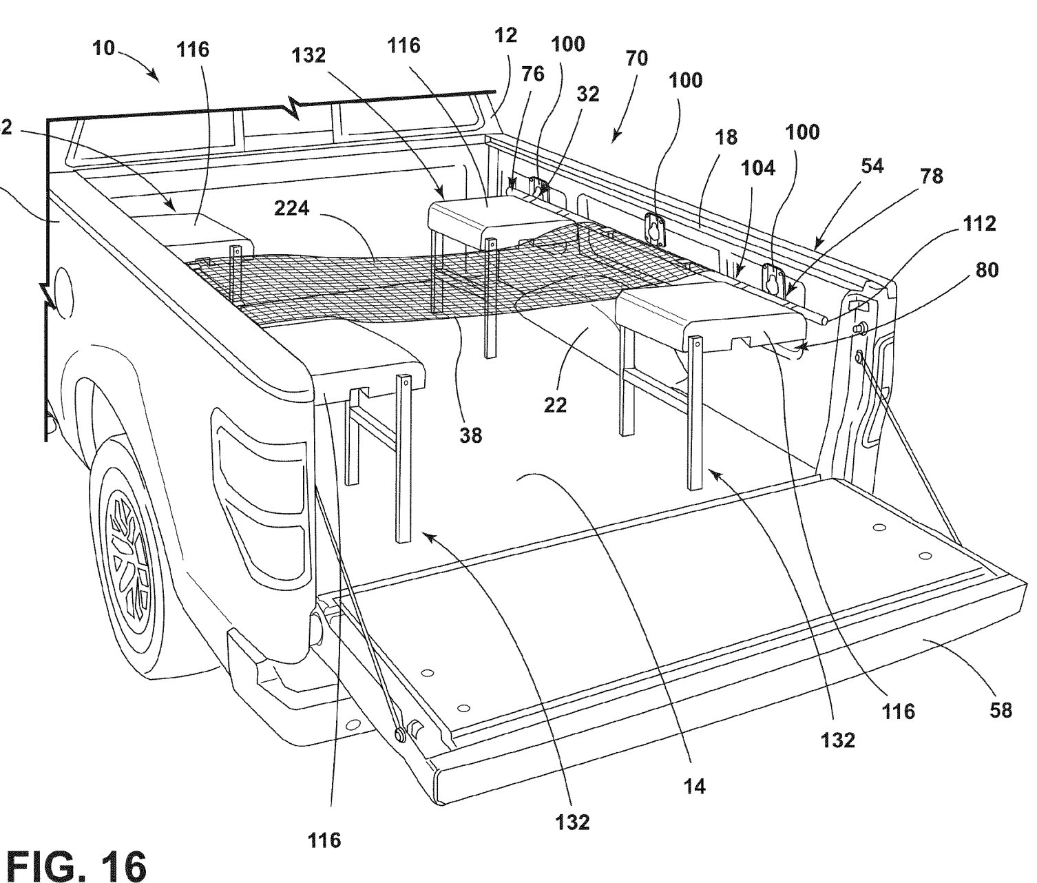 Interestingly enough, there are several attachments pitched in the different design illustrations. One is a rollout net that can stretch vertically or horizontally across the bed, holding whatever cargo you might take with you to a ballgame. Foam fingers, maybe? Meanwhile, another shows a folding bench that spans the gap over the wheel well. There aren’t any extra legs to hold it up, but the figure disclosure does call it a seat. Either way, it’s surely more than sufficient for holding a few paper plates stacked with wings and the requisite Solo cups.