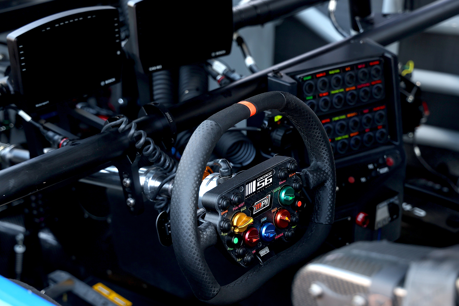 The Garage 56 car is powered by a 5.8-liter Chevrolet R07 cast iron small block mated to a 5-speed sequential transaxle with paddle shifters—Cup cars skip the paddles. The Garage 56 car has working headlights and taillights too, compared to the appliques used for NASCAR races. The Garage 56 rides atop Goodyear Eagle tires developed specifically for the race—left and right turns, y’know—with carbon brakes behind them.