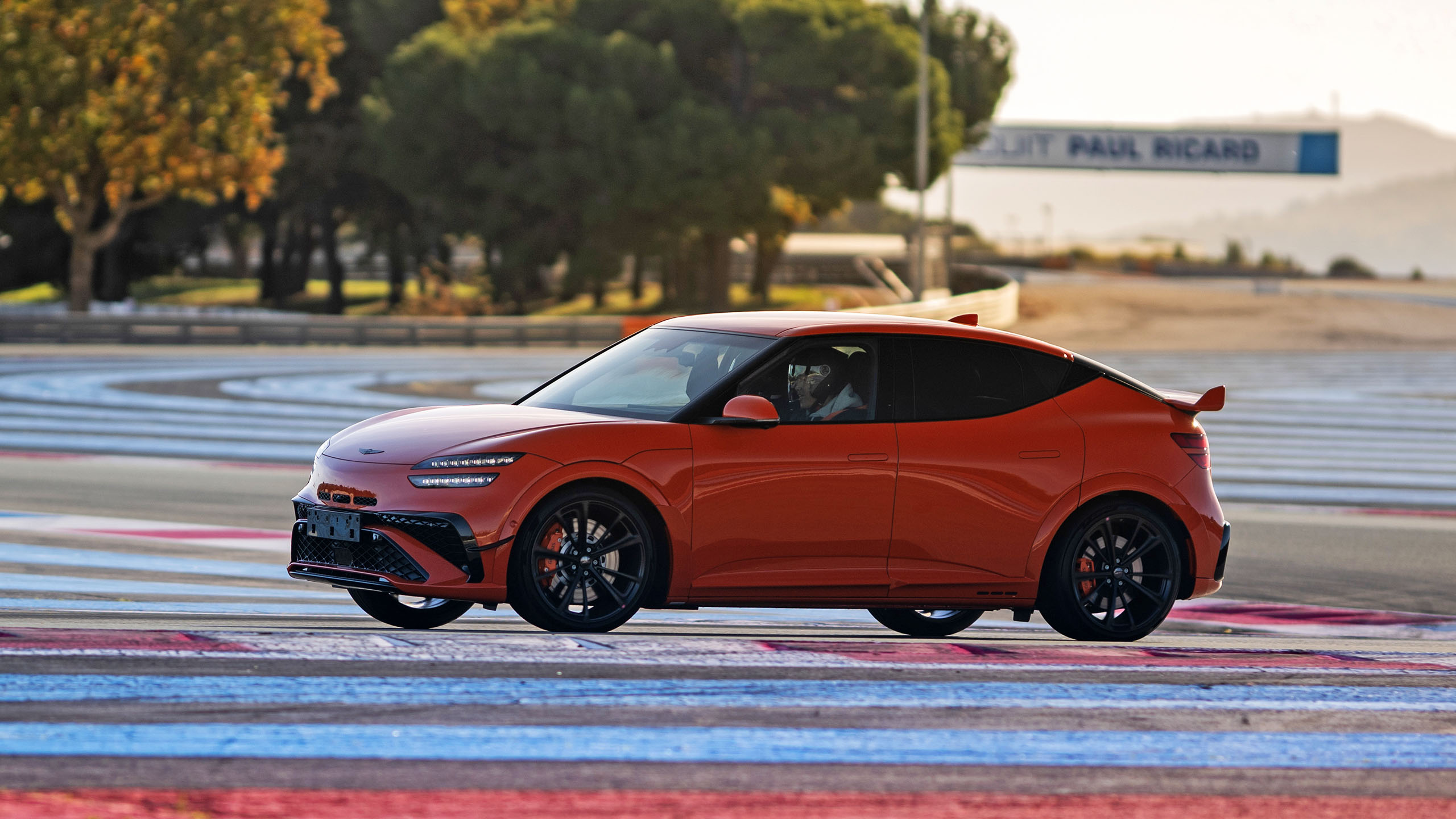 The reveal took place at the venue of the last French Formula 1 Grand Prix, the Circuit Paul Ricard. This further highlights the connection between street-going Magma models and the Genesis Magma Racing WEC team, which is headquartered just down the road from the famed racetrack. Despite the push to give the Magma sub-brand a sporty, track-focused aura, the automaker insists the GV60 Magma is really more of a GT with the “agility of a track car.”