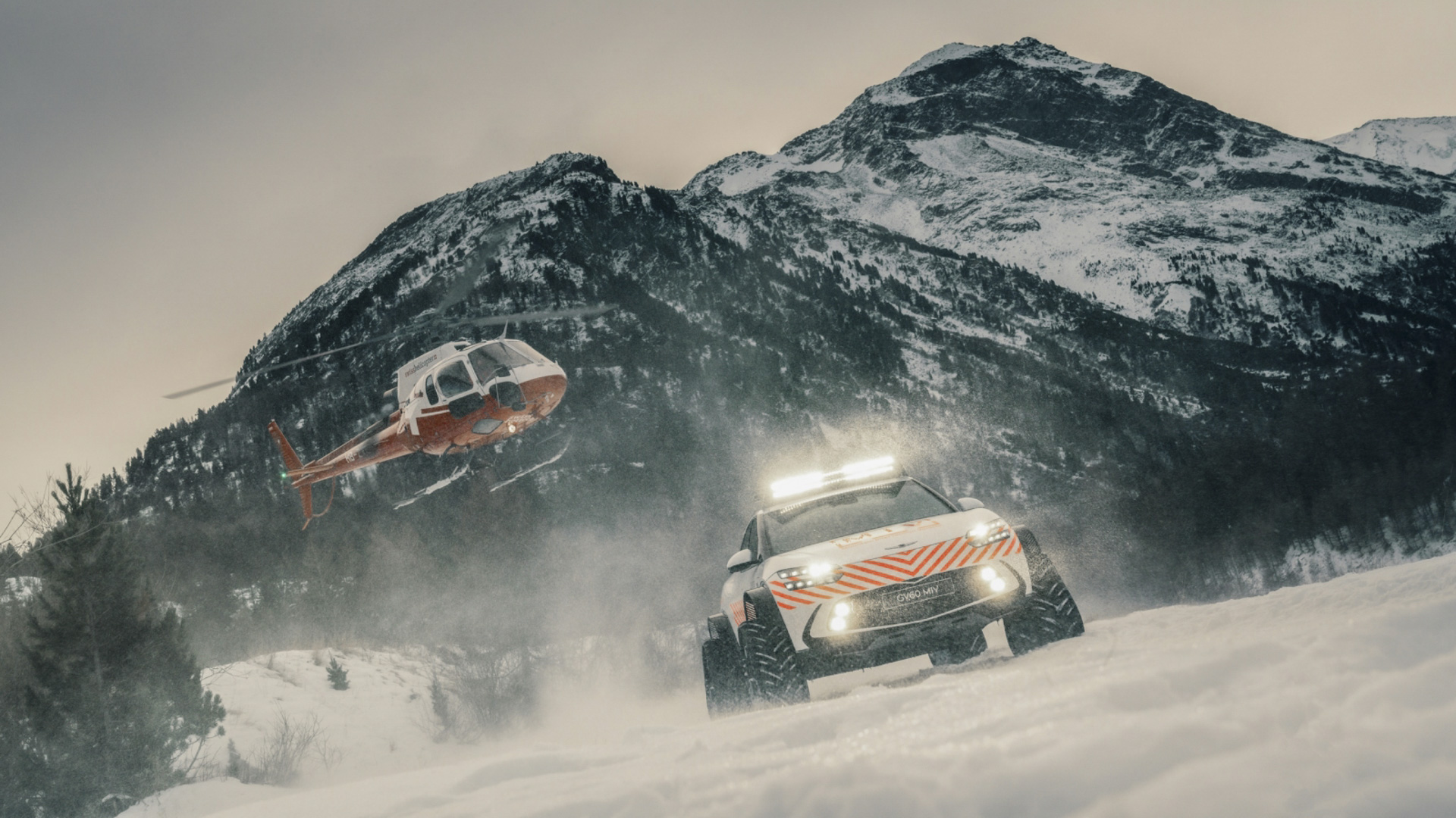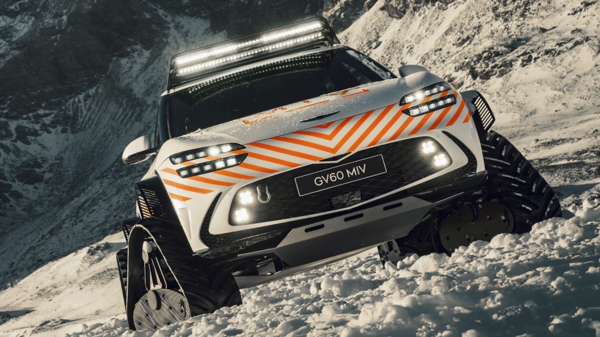 This Genesis GV60 “Mountain Intervention Vehicle” is a real thing, albeit a one-of-one concept, currently on display at a Swiss mountain resort called Ameron. It seems kind of random to show off a toy like this at the World Economic Forum, currently taking place there in Davos. But like the ice it’s parked on, this snow-treaded SUV is cool as hell.