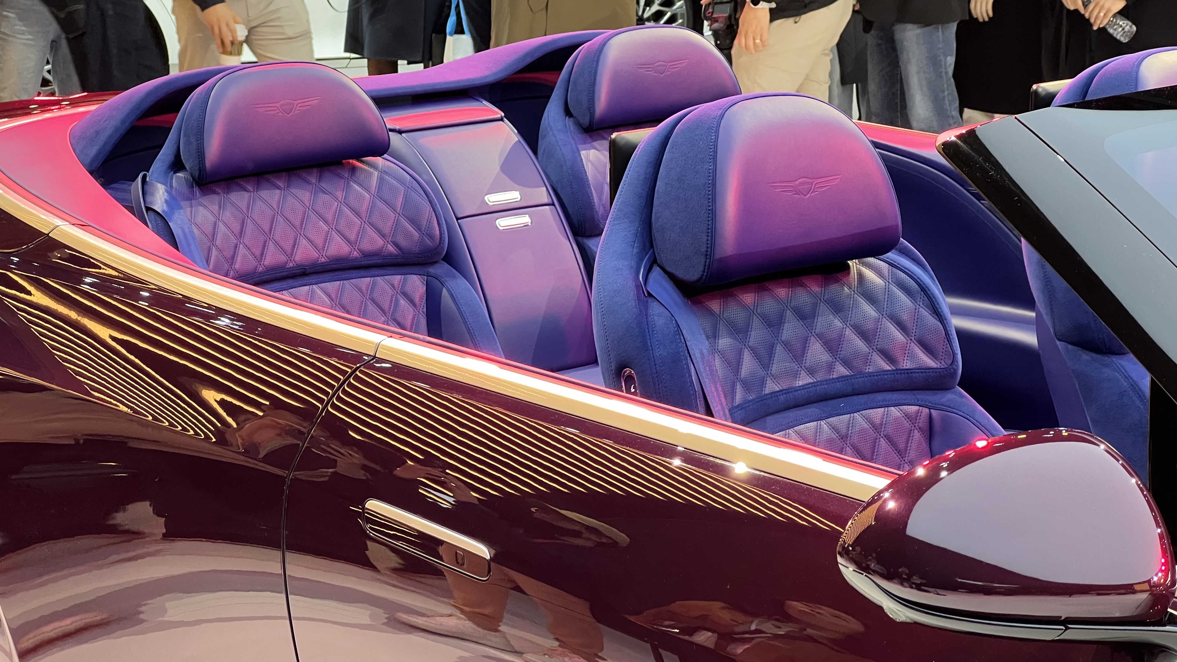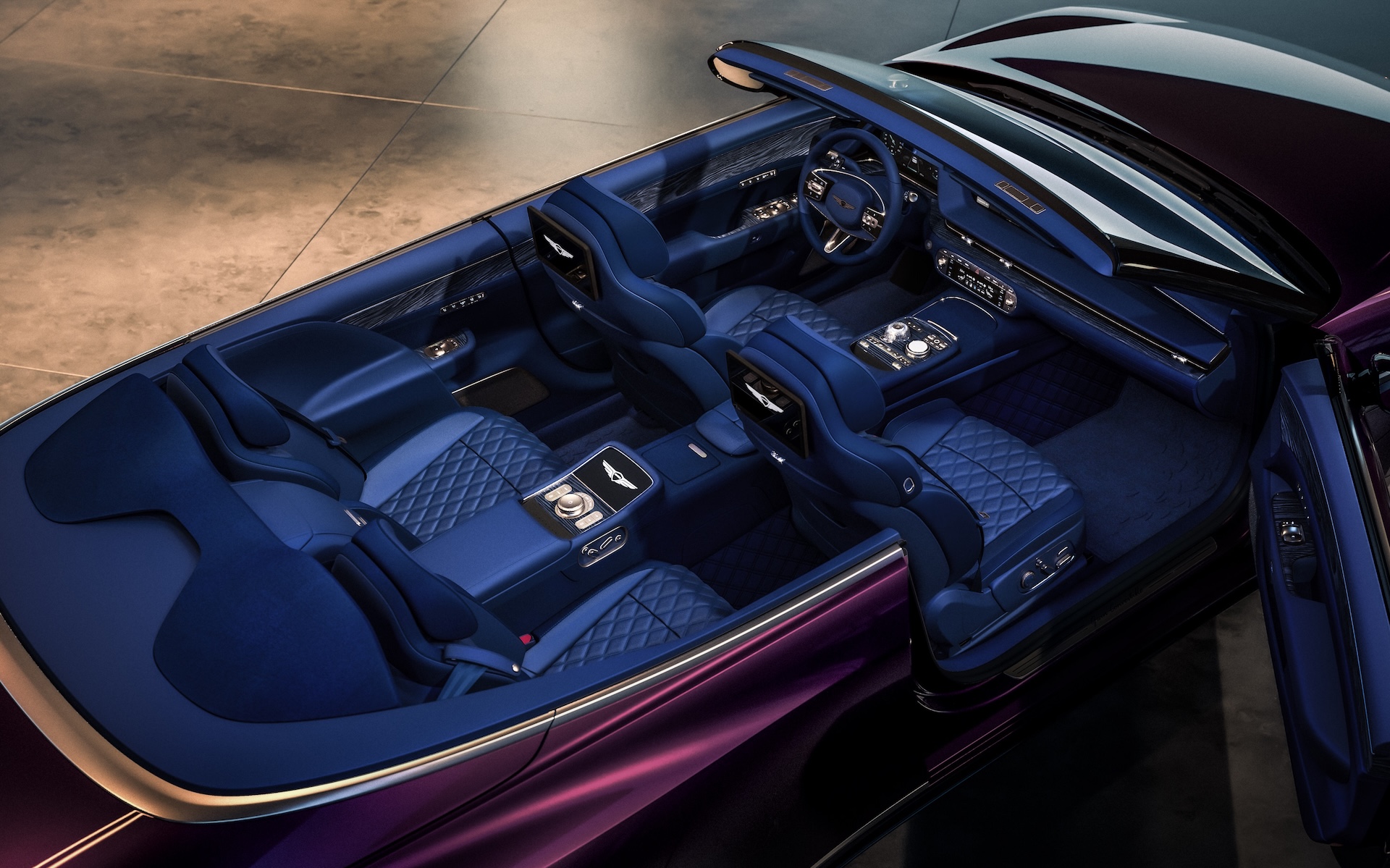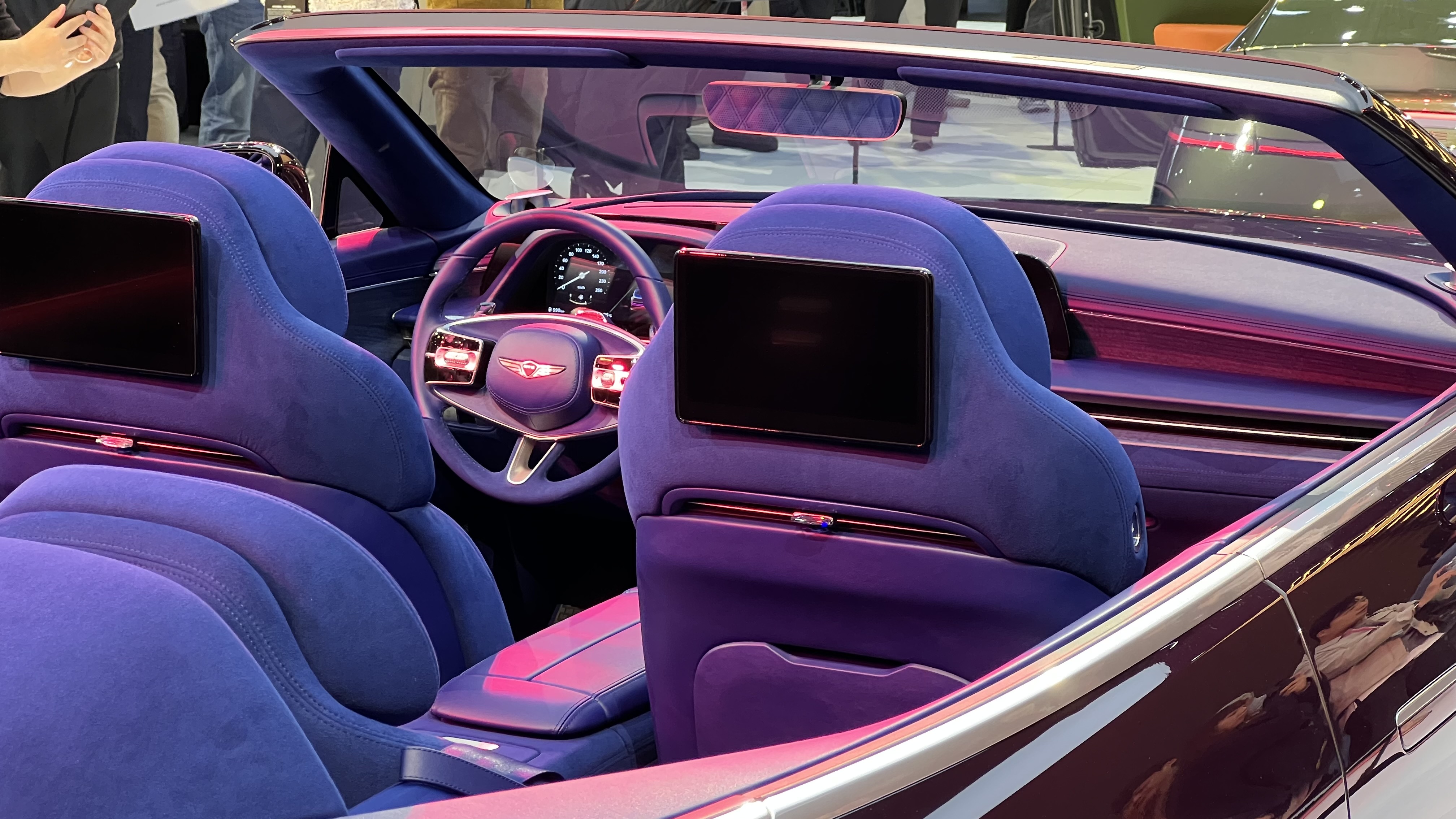 The X Gran Concepts are based on the full-size G90 sedan and that lineage shows in the back seats. Unlike in a lot of 2+2s, those second two passengers shouldn’t be wanting for attention as the rear quarters are decidedly spacious, getting screens and adjustable seating just as they would in a flagship luxury sedan.